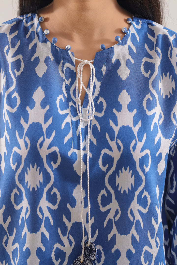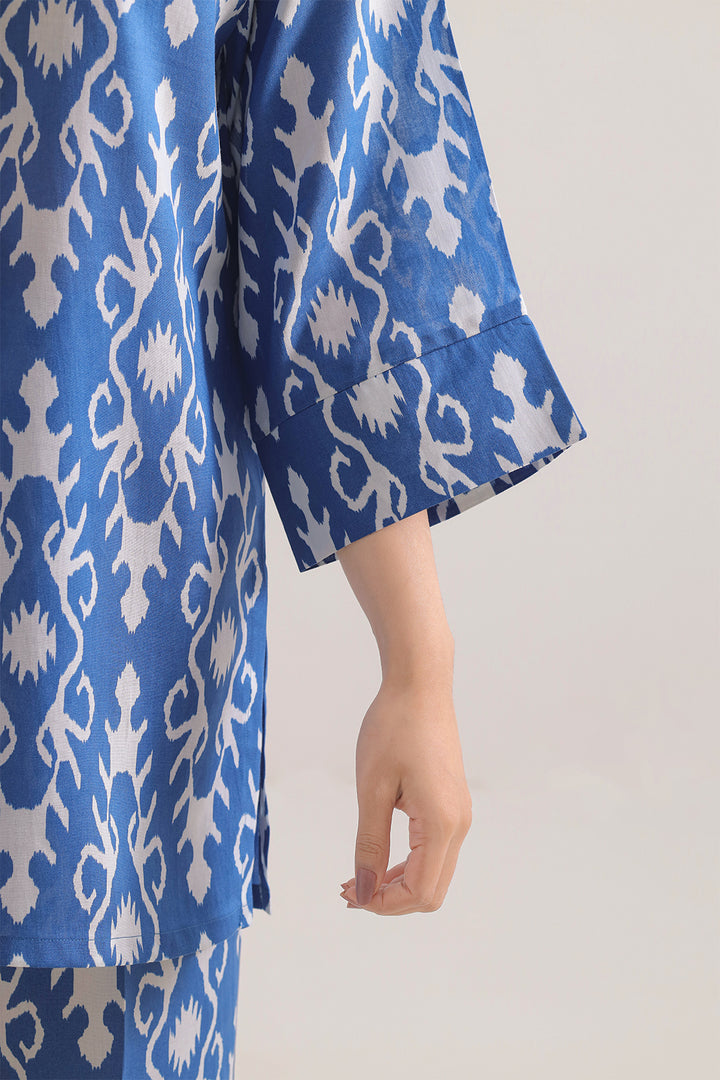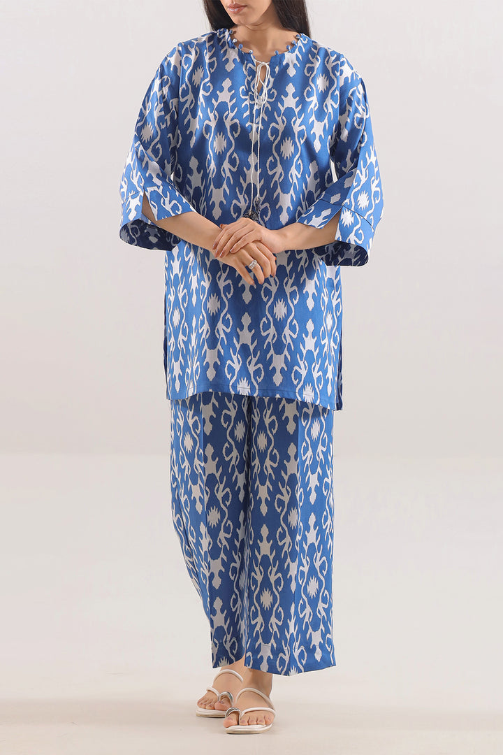 Printed Embroidered Silk-Touch Stitched 2-Piece By SAYA Wears A Lustrous Blue Hue That Doubles As Sleek And Sophisticated. Crafted From Sumptuous Lyocell With A Silk-Touch Finish, Its Shirt Panel Carries Delicate Embroidery Over A Printed Base, Offering Depth And Elegance. The Ready-To-Wear Stitching Ensures Clean Lines, Perfect Collar, And Flawless Drape. Paired Trouser Matches Seamlessly In Color And Fabric, Giving You A Polished Monochrome Ensemble That’s Equally Suited For Evening Events, Parties Or Refined Daywear.