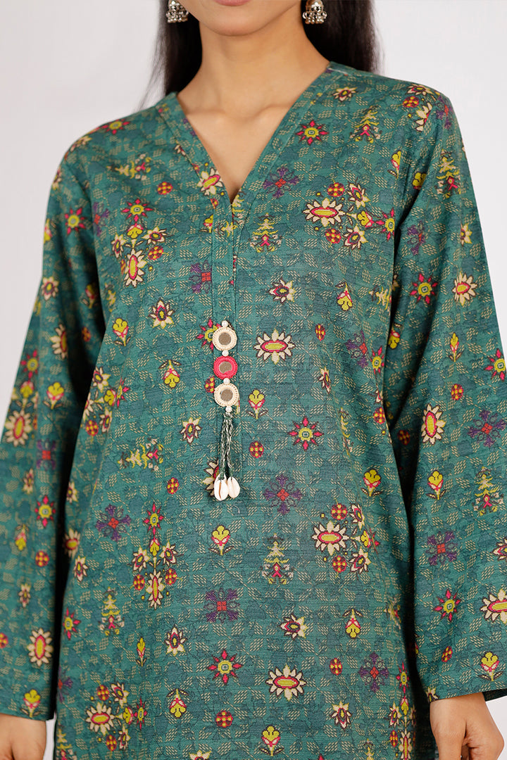 Embrace winter comfort with this Printed Khaddar Stitched 2-Piece set. Designed with a stylish printed khaddar shirt and matching trousers, it offers warmth and durability, making it ideal for casual wear and cozy gatherings during the chilly season.