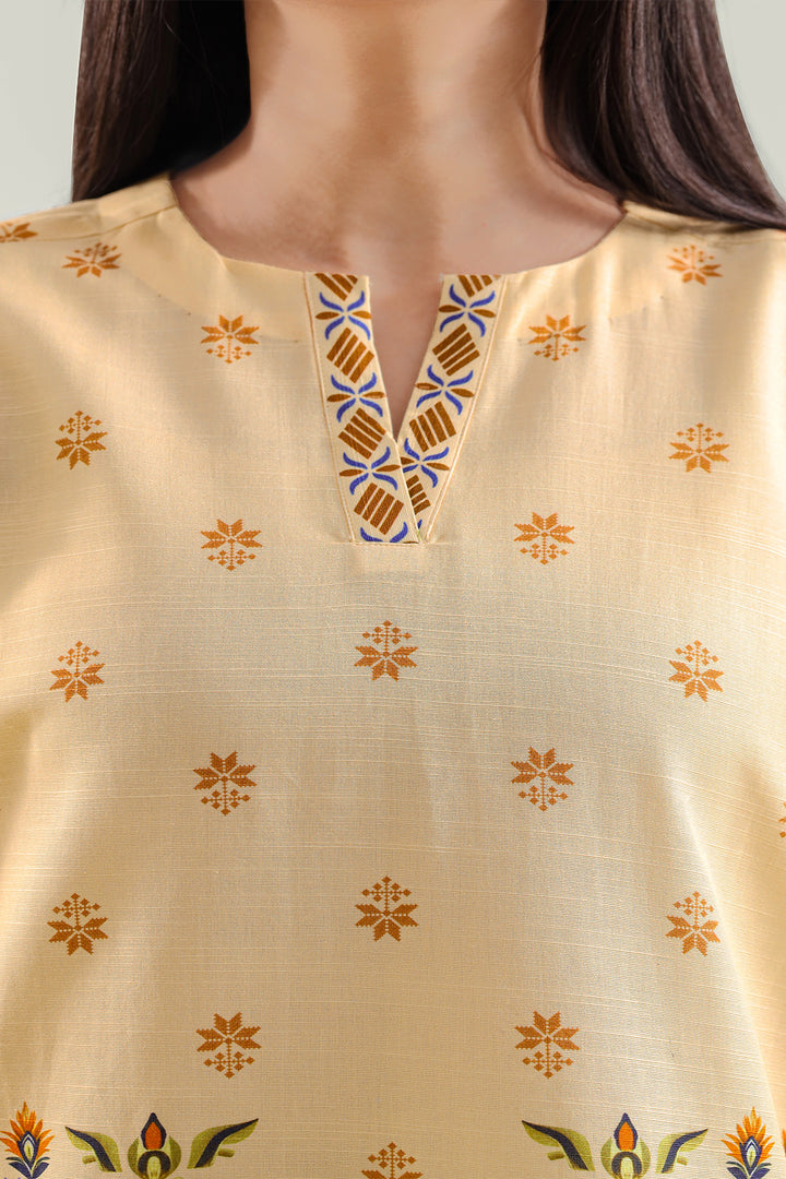 Printed Khaddar Stitched 2-Piece By SAYA Features Thick, Coarse Khaddar Cotton — A Fabric Known For Its Warmth And Rustic Texture. The Shirt Is Highlighted With A Stylish Print, And The Trouser Offers Durable Structure And Comfort. Ideal For Cold-Weather Casuals Or Cozy Winterwear.