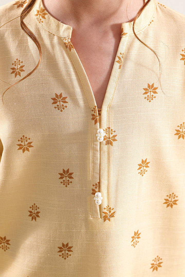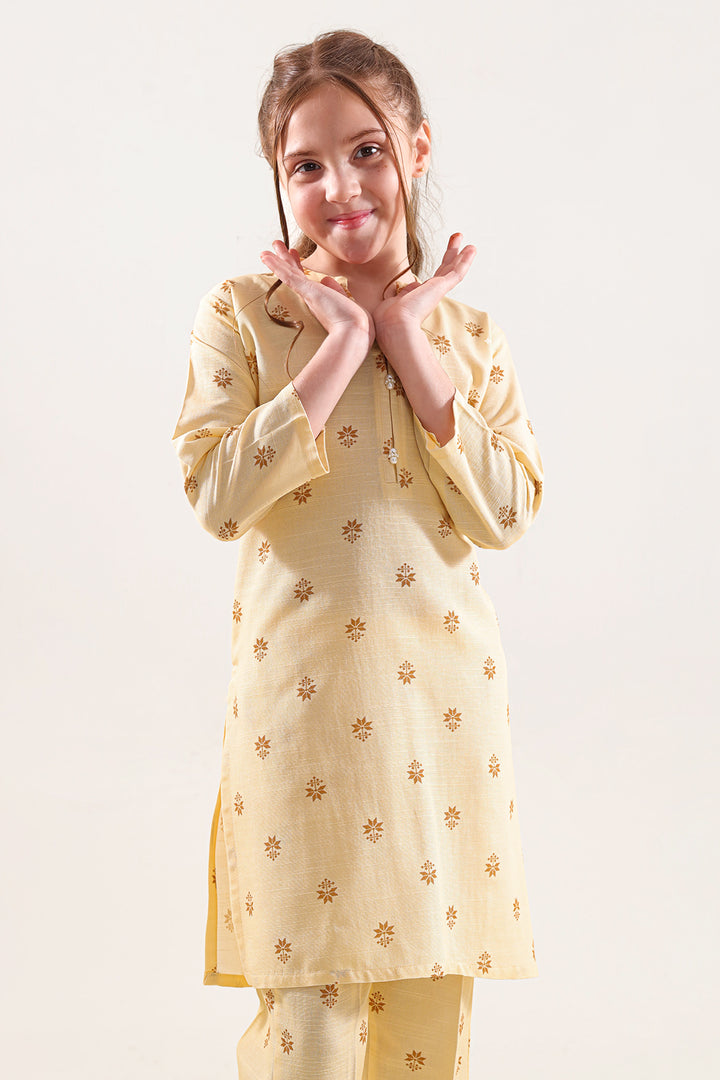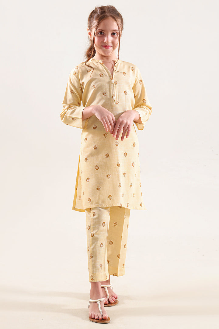 Dress Your Little One In The Cozy Elegance Of The SAYA Printed Khaddar Shirt & Trouser Set, Tailored From Khaddar — A Hand-Spun, Hand-Woven Fabric Known For Its Charm And Natural Warmth. The Shirt Features A Cheerful Print That Brings A Playful Touch To The Textured Weave, While The Trouser Offers An Elastic Waistband And Straight Cut For Comfortable Movement.