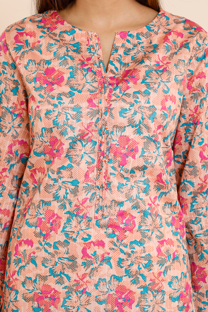 Elevate your everyday wardrobe with Saya's Printed Lawn Stitched 2-Piece Set in a refreshing peach hue. Crafted from premium lawn fabric, this ready-to-wear ensemble offers a lightweight and breathable feel, perfect for warm days. The vibrant print adds a trendy flair, while the comfortable fit ensures ease of movement for daily activities. Ideal for casual outings and semi-formal occasions, this set reflects Saya's commitment to quality and timeless design.
