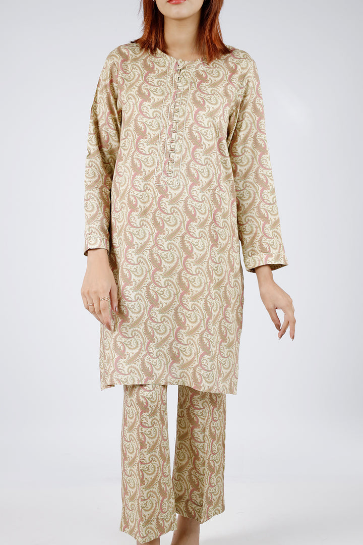 Upgrade your wardrobe with this printed lawn stitched 2-piece ensemble. Featuring a stylish shirt and matching trouser, it is crafted from breathable lawn fabric for superior comfort and durability. Perfect for casual outings, this outfit blends vibrant prints with elegant design for a chic, polished look.