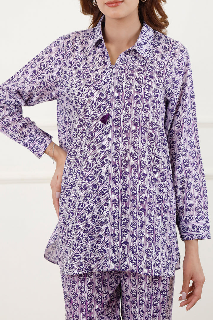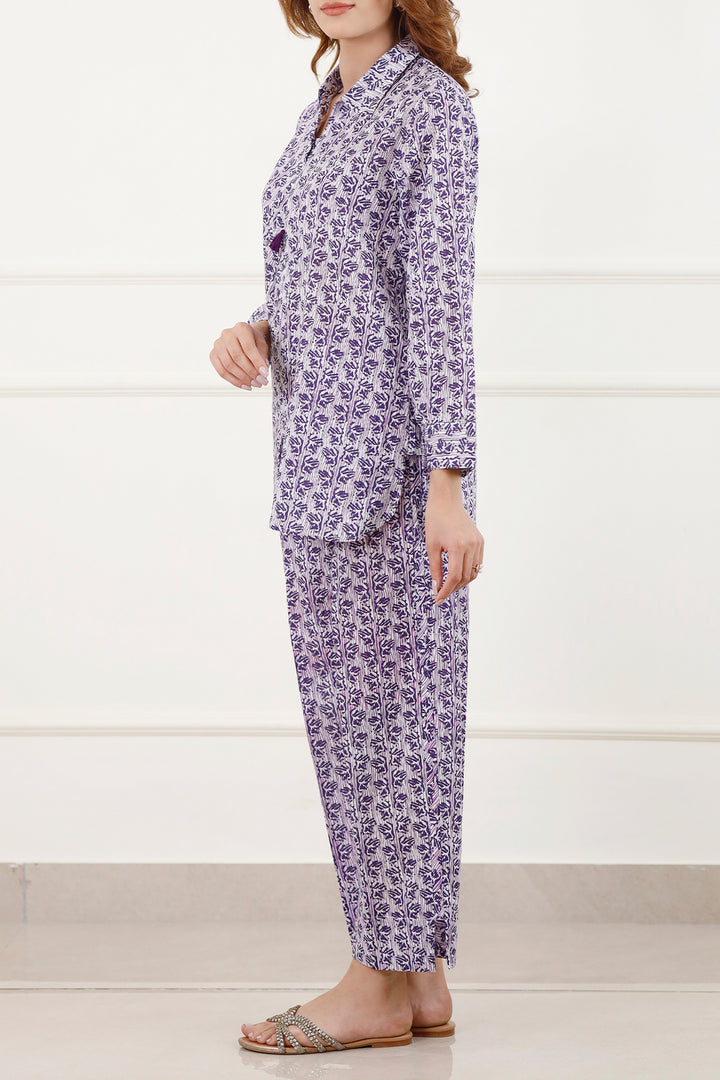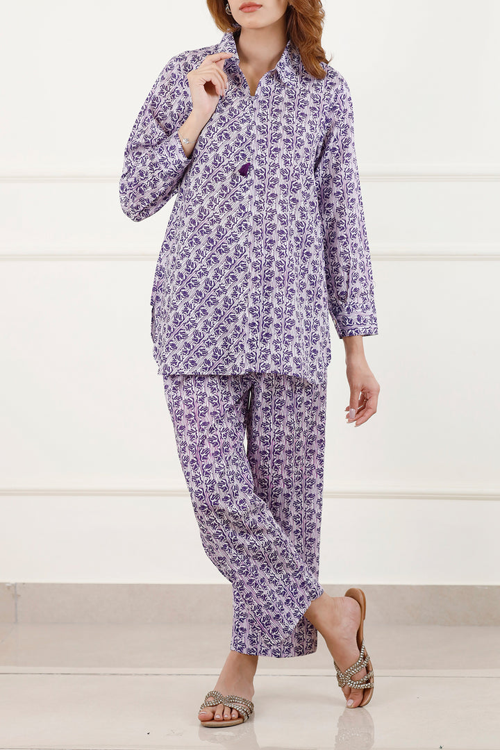 Introducing Saya's Printed Lawn Stitched 2-Piece ensemble, a perfect blend of style and comfort. This ready-to-wear set features a purple lawn shirt adorned with intricate prints, paired with matching trousers. Crafted from lightweight and breathable lawn fabric, it's ideal for casual wear and everyday comfort.