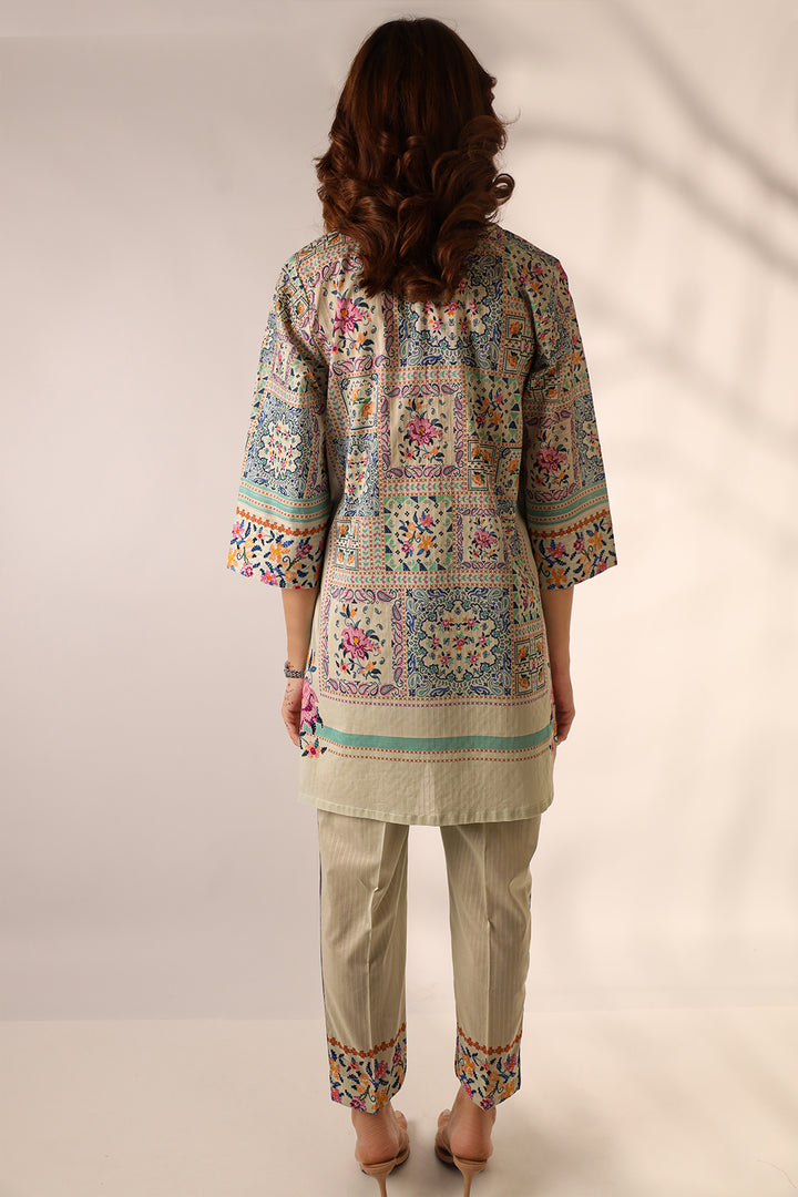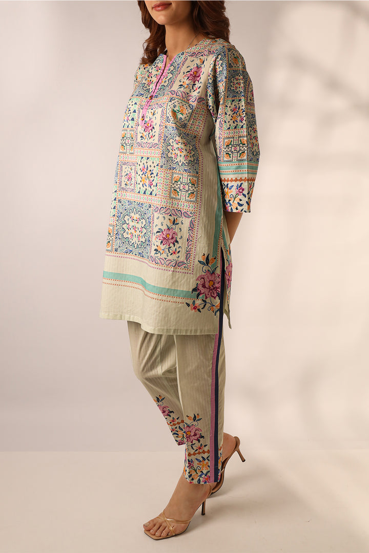 Refresh your wardrobe with this printed lawn stitched 2-piece from Saya. The lightweight printed shirt pairs effortlessly with a dyed trouser, offering breathable comfort and a chic everyday look. Ideal for casual wear during warm weather.