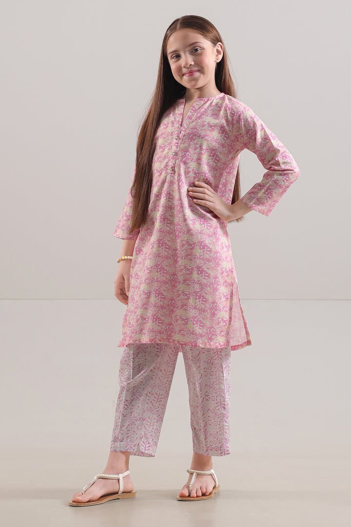 Printed Lawn Stitched 2-Piece For Kids By SAYA Features Luxuriously Soft Lawn Fabric In A Cheerful Pink Tone, Adorned With Playful Seasonal Print Across A Ready-To-Wear Shirt. Paired With A Matching Lawn Trouser, This Set Delivers Airy Comfort, Tailoring Convenience, And Child-Friendly Durability. Perfect For Playdates, Casual Outings, Or Festive Family Days—Effortlessly Blending Practicality With Youthful Charm.