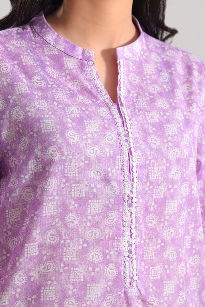 A Chic Everyday Ensemble Featuring A Beautifully Printed Lawn Shirt Paired With A Matching Trouser In A Rich Purple Hue. Crafted From Lightweight, Breathable Lawn Fabric That Ensures Effortless Comfort And Refined Appeal. The Shirt Boasts A Contemporary Print That Balances Modern Flair With Subtle Sophistication, While The Coordinated Trouser Offers Polished Versatility. This Ready-To-Wear 2-Piece By SAYA Delivers Immediate Style, Perfect For Casual Outings Or Semi-Formal Gatherings.