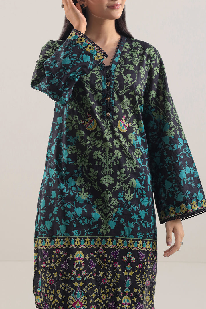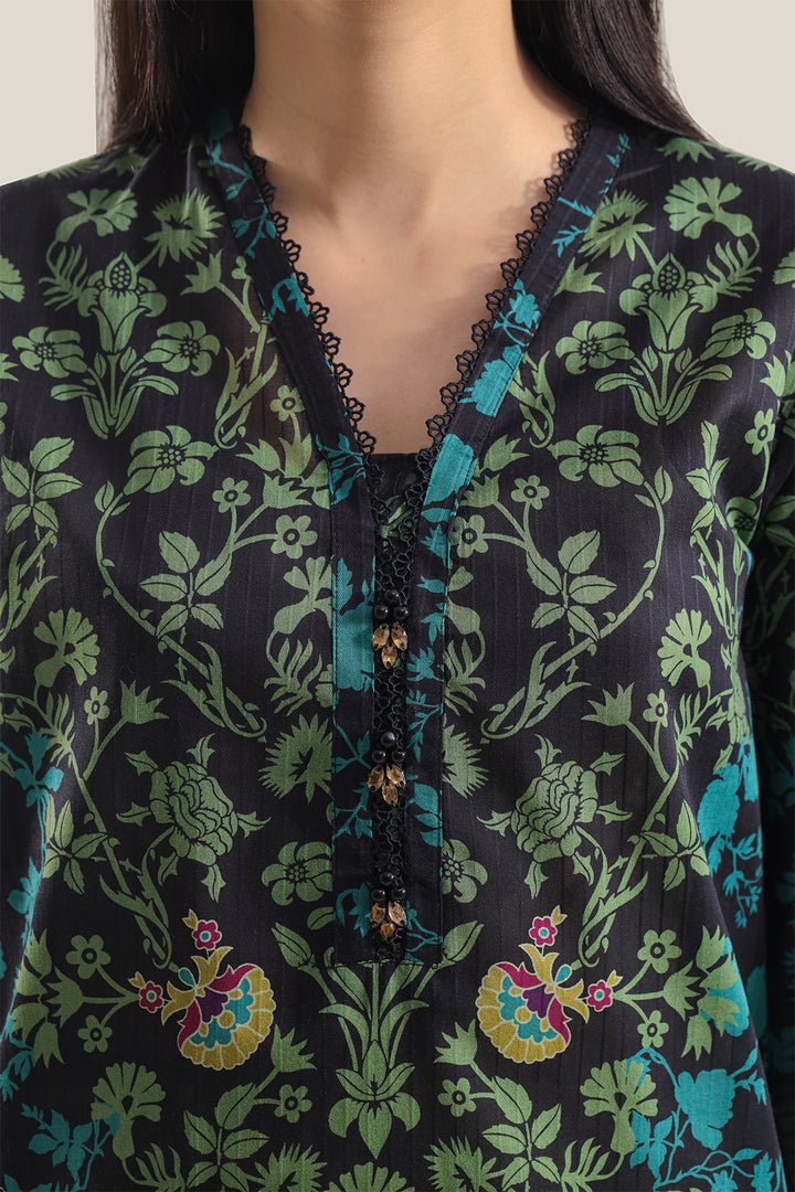 SAYA Printed Lawn Two-Piece Shirt And Trouser Set In Deep Black Crafted With Premium Lawn Fabric That Is Lightweight And Breathable. Shirt Features Elegant Print Design That Adds Visual Interest, While The Trouser Complements With Clean, Sharply Stitched Finish. Ready-To-Wear Ensemble Offers Effortless Style For Evening Outings Or Sophisticated Casual Events With A Refined Edge.