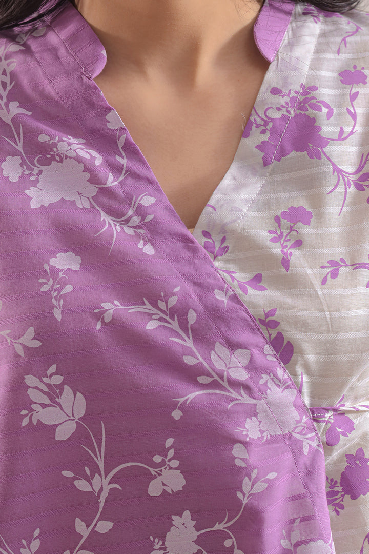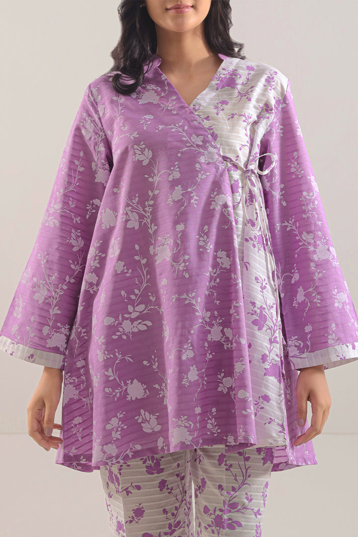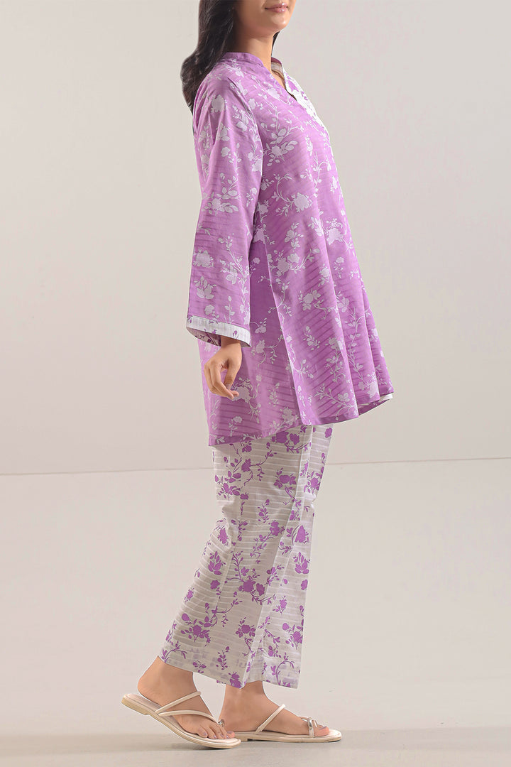 Printed Lawn Stitched 2-Piece By SAYA Glows In A Soft Purple Tone. Made From Lightweight, Breathable Lawn Fabric With An Elegant All-Over Print, It Feels Gentle On The Skin And Moves Gracefully. The Shirt Is Ready-To-Wear With Clean Tailoring And A Neat Collar, While The Matching Trouser Offers Structure And Ease. Perfect For Daytime Gatherings, Casual Outings, Or Warm-Weather Elegance.