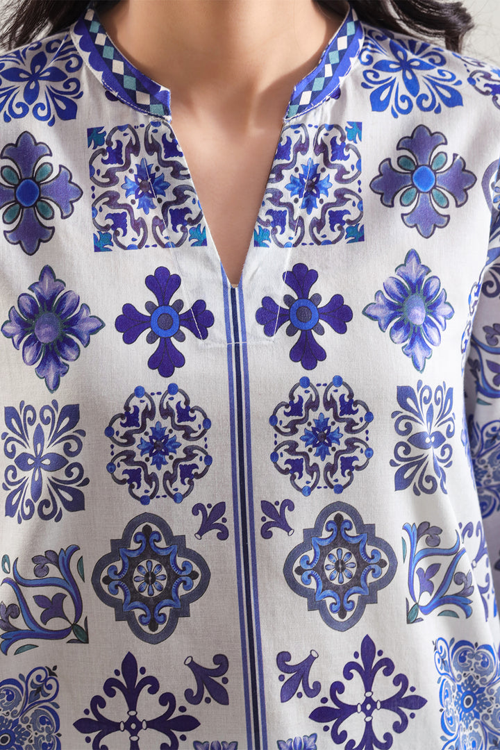 Elevate your daywear with this elegantly crafted set by SAYA, designed for both comfort and effortless style. Made from lawn fabric known for its lightweight and breathable properties, the shirt features a chic all-over print in soothing tones and a tailored finish with crisp stitching and a smart collar. Paired with a matching trouser designed in the same fabric, this cohesive ensemble is perfect for smart casual gatherings, daytime events or simply refined everyday wear.