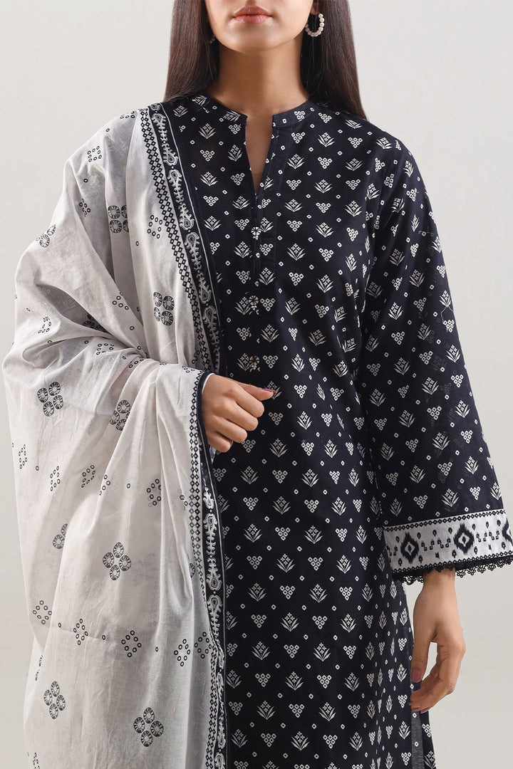 A Sleek Black Ensemble Crafted From Soft, Breathable Lawn Fabric That Ensures Lightweight Comfort With Everyday Appeal. This Ready-To-Wear 3-Piece Set Features A Cheerfully Printed Shirt, Coordinated Dyed Trouser, And A Light Lawn Dupatta That Adds Airy Movement And Textural Contrast. The Balanced Design Blends Casual Ease With Polished Flair, Making It Perfect For Day-To-Day Wear Or Laid-Back Gatherings With Subtle Grace.