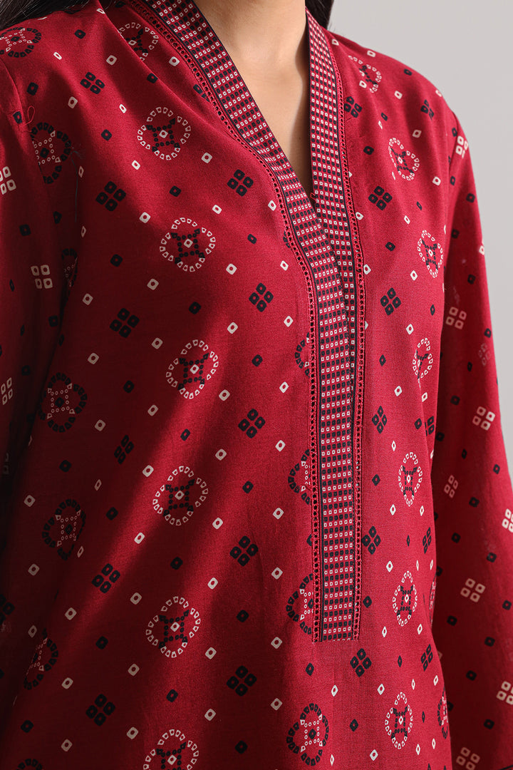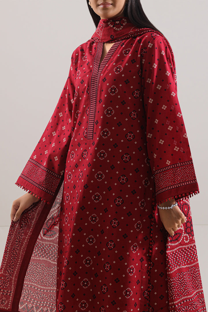 Red Printed Lawn Stitched 3-Piece Set From SAYA Includes Ready-To-Wear Lawn Shirt, Matching Lawn Dupatta And Dyed Trouser. Lightweight Lawn Fabric Ensures Breathability And Comfortable Wear. Shirt Has Clean Tailoring And Classic Collar, Dupatta Adds Layer Of Elegance, Trouser Offers Coordinated Finish. Ideal For Festive Events, Day Gatherings, Or Styling As A Vibrant Statement Outfit.