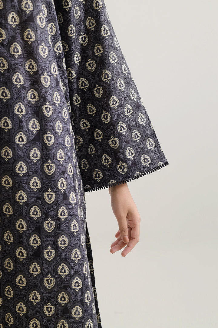 Printed Lawn Stitched Three-Piece Ensemble By SAYA, Crafted From Light, Breathable Lawn Fabric In Sophisticated Black With An Elegant Seasonal Print (Design SP-11128). This Ready-To-Wear Set Includes A Printed Shirt, Matching Printed Dupatta, And Dyed Trouser — offering Instant Cohesion And Polished Styling. Fine Stitching, Smooth Hemlines, And Versatile Cuts Make It Perfect For Daytime Events, Casual Gatherings, Or Elegant Everyday Wear With Minimal Effort. A Must-Have Ensemble That Blends Comfort, Depth And Refined Flair.