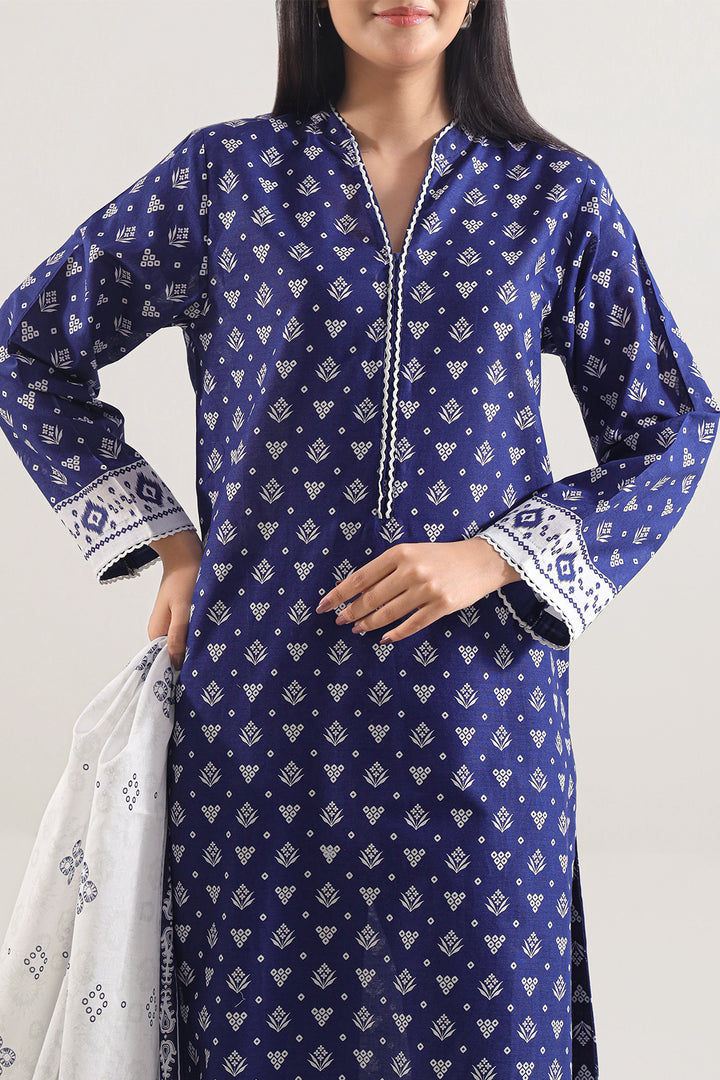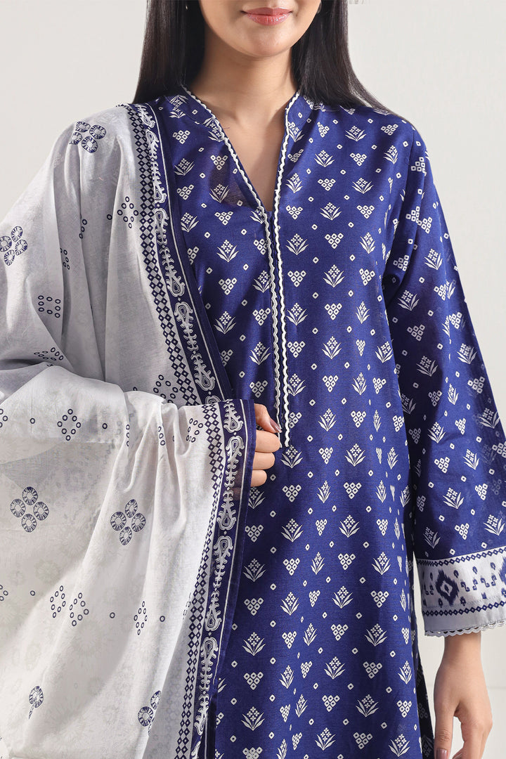 Refresh Your Summer Wardrobe With The SAYA Printed Lawn Stitched 3-Piece Set In Blue, Crafted From Premium Lawn Fabric Renowned For Its Lightweight Breathability And Comfortable Wear. The Ensemble Includes A Vibrantly Printed Shirt With Refined Detail, A Coordinated Trouser With A Smooth Dyed Finish, And A Printed Dupatta That Completes The Look With Grace. The Rich Blue Tone Adds Depth And Versatility, Making This Set Ideal For Casual Gatherings, Daytime Outings, Or Warm-Weather Events. Designed For Effortless Style With Maximum Comfort, This 3-Piece Set Is A Statement Of Refined Simplicity.