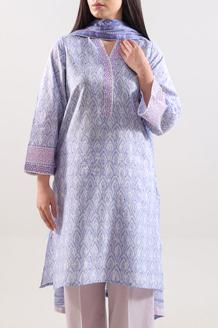 SAYA Printed Lawn Stitched Three-Piece Set In Sky Blue Featuring Premium Lawn Fabric With Delicate Print Design And Coordinated Dupatta That Adds Layers Of Elegance. Ready-To-Wear Three-Piece Ensemble Includes Shirt, Trouser And Dupatta With Expert Stitching And Seamless Finishing. Light And Breathable Fabric Ensures Comfortable Wear Through Warm Days; Perfect For Day Events, Semi-Formal Gatherings Or Festive Occasions That Call For Chic And Refined Styling.