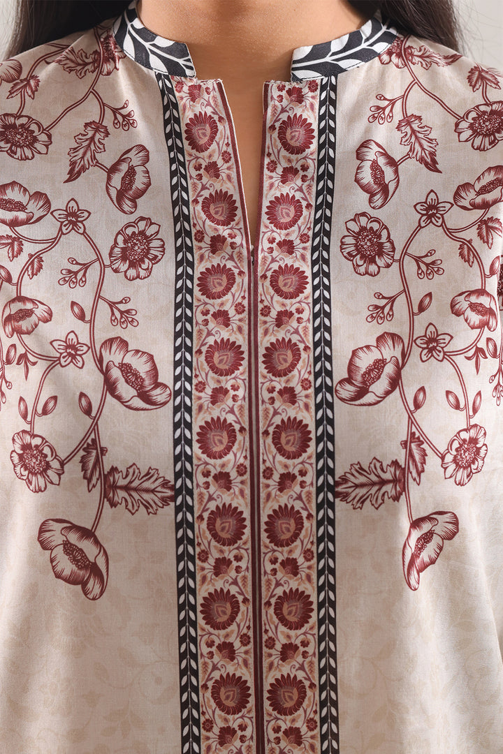 Delicate Yet Refined, This SAYA Printed Lawn Stitched Shirt In Soft Beige Embodies Subtle Elegance. Crafted From Premium Lawn Fabric, It Offers Feather-Light Comfort And Breathable Ease. The All-Over Print Introduces Gentle Detail To The Neutral Beige Base Without Overpowering The Look. With Flawless Stitching And Crisp Seams, The Shirt Maintains A Polished Structure. Ideal For Daytime Affairs, Casual Socials, Or Layered Festive Ensembles, It Adds Grace And Effortless Style To Your Wardrobe.