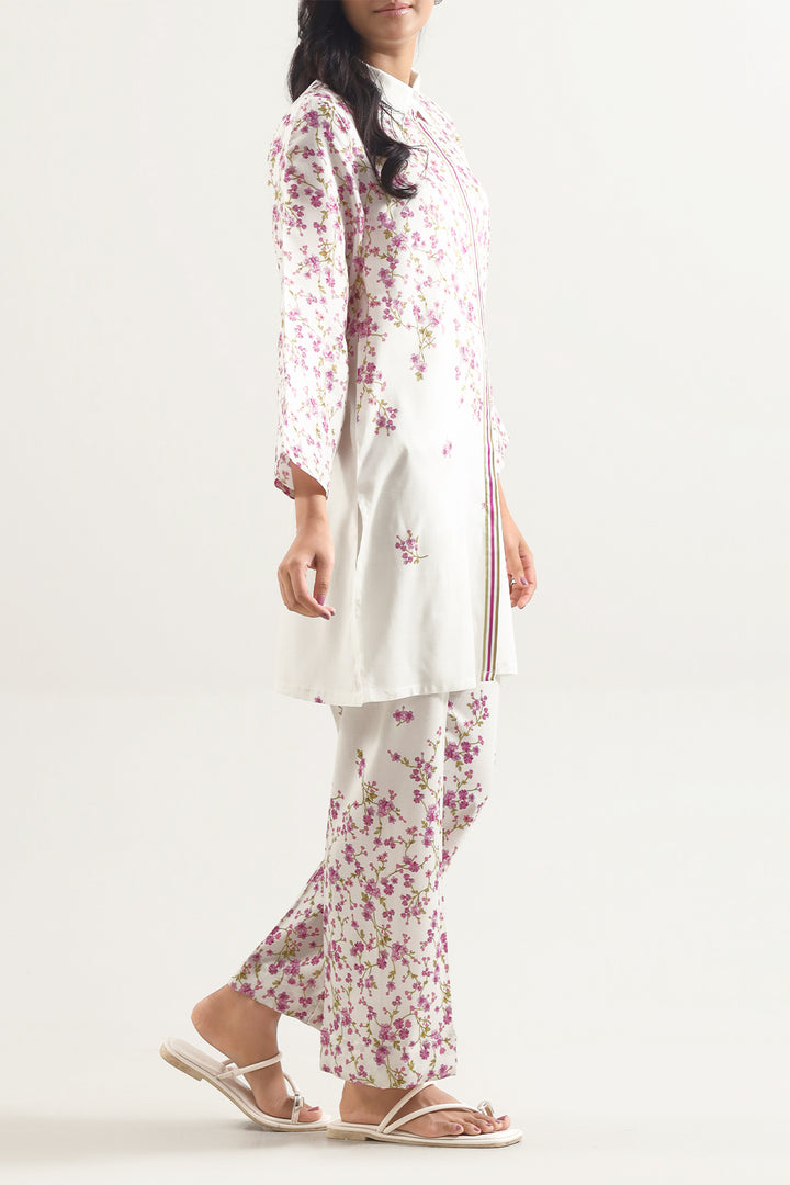 Refresh Your Wardrobe With SAYA’s Printed Silk-Touch 2-Piece Set In White. Crafted From Premium Lyocell Fabric That Offers A Smooth Texture, Balanced Movement, And Comfortable Wear. The Ready-To-Wear Shirt Features A Stylish Print That Elevates The Clean White Base, While The Coordinated Trouser Delivers Polished Ease. The Crisp White Hue Ensures Versatility—Perfect For Daytime Events, Smart Casual Outings, Or Minimalist Styling.