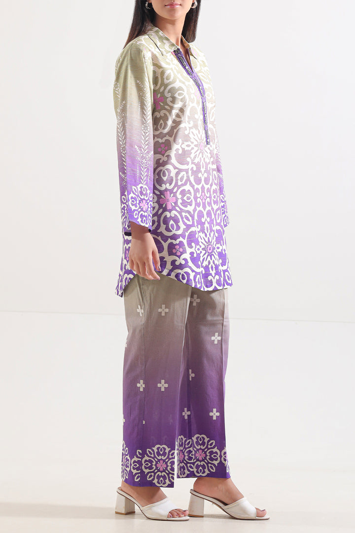 Printed Cotton Viscose Stitched Shirt By SAYA Features a Luxuriously Soft Blend of Cotton and Viscose in a Rich, Refined Purple Hue. Intricately Printed Across a Ready-To-Wear Silhouette, the Shirt Marries Breathable Comfort With Stylish Definition. Its Lightweight Fabric, Elegant Draping, and Artful Print Make It an Ideal Choice for Casual Chic, Office Pop-In, or Semi-Formal Daywear That Radiates Refined Flair.