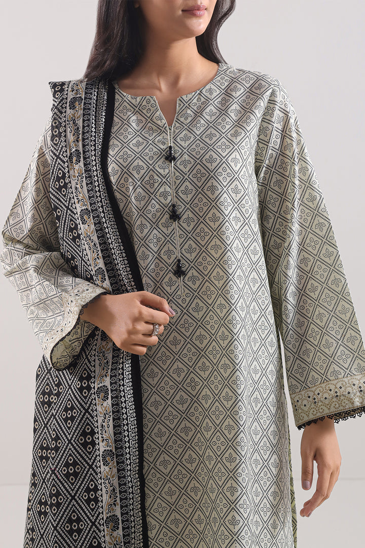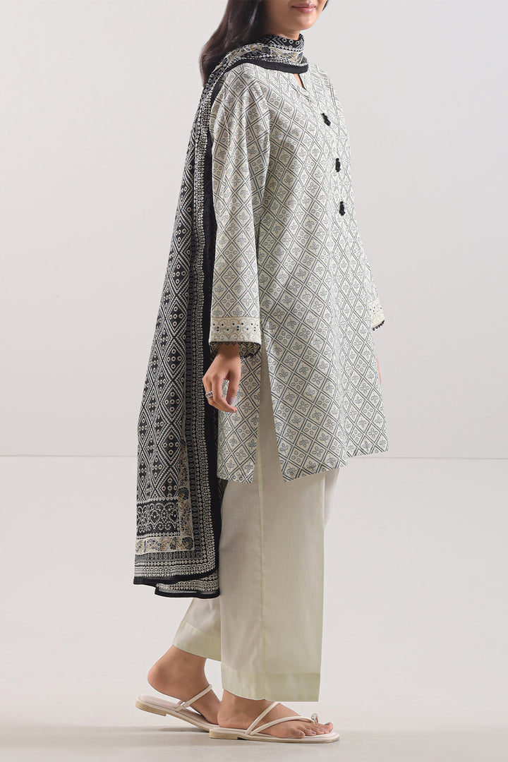 Printed Strip Lawn Stitched Three-Piece Ensemble By SAYA, Crafted From Light And Breathable Lawn Fabric To Offer Comfort Through Warmer Days. The Set Includes A Printed Shirt With Vertical Stripes, A Matching Dupatta To Elevate The Silhouette, And A Coordinated Trouser To Complete The Look. Bathed In A Striking Beige Tone With Elegant Striped Detailing, It Delivers Bold Style With Refined Appeal. Meticulous Stitching, Polished Finish, And Ready-To-Wear Cuts Ensure You Step Out With Poise. Ideal For Daytime Celebrations, Festive Events Or Smart Casual Gatherings.