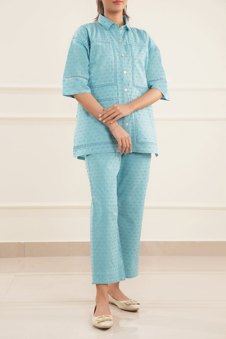 Elevate your style with this reverse jacquard stitched 2-piece outfit, crafted for a sophisticated yet modern look. The textured jacquard fabric adds depth, while the tailored shirt and trouser ensure effortless elegance. Ideal for both casual and semi-formal wear, this ensemble offers a refined aesthetic with superior comfort.