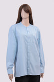 Be the epitome of grace in this soft light blue hue features with a round neckline, trendy buttons, and a pocket on the front.