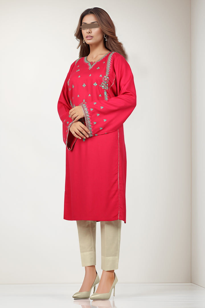 Ready To Wear Viscose Dobby 1 Piece Embroidered Stitched Shirt.