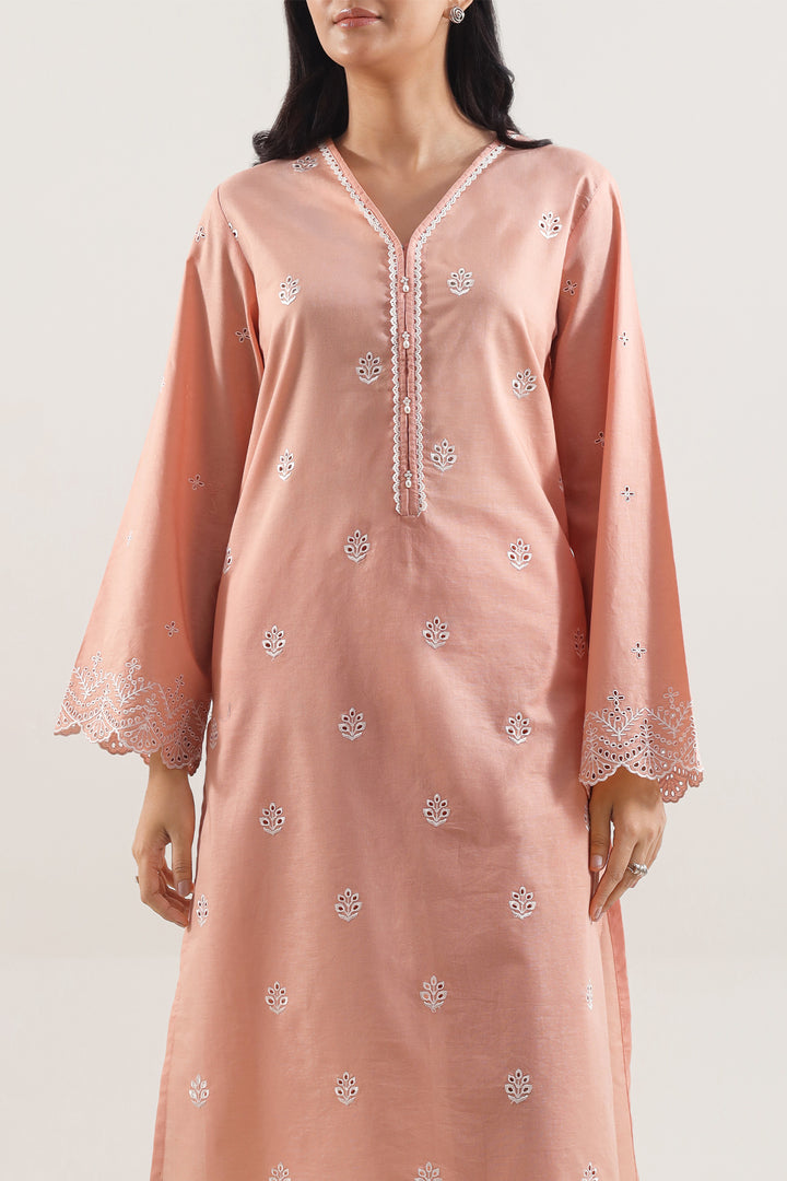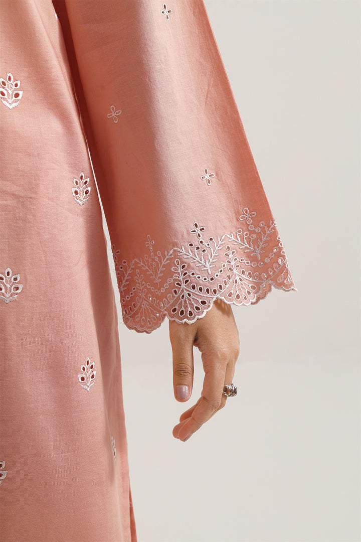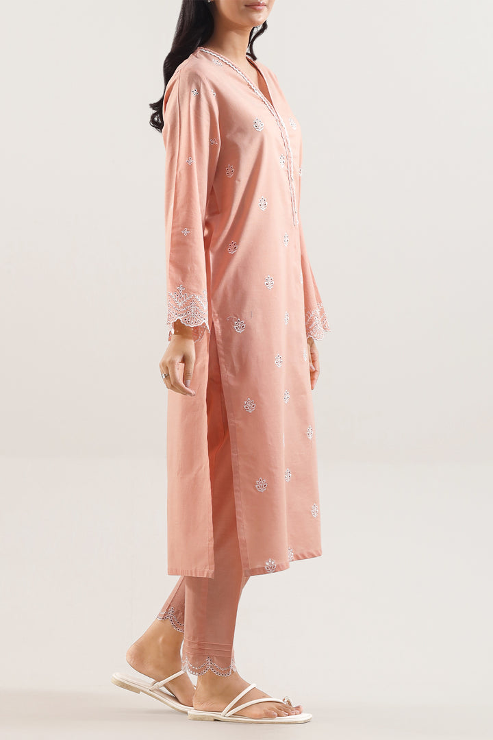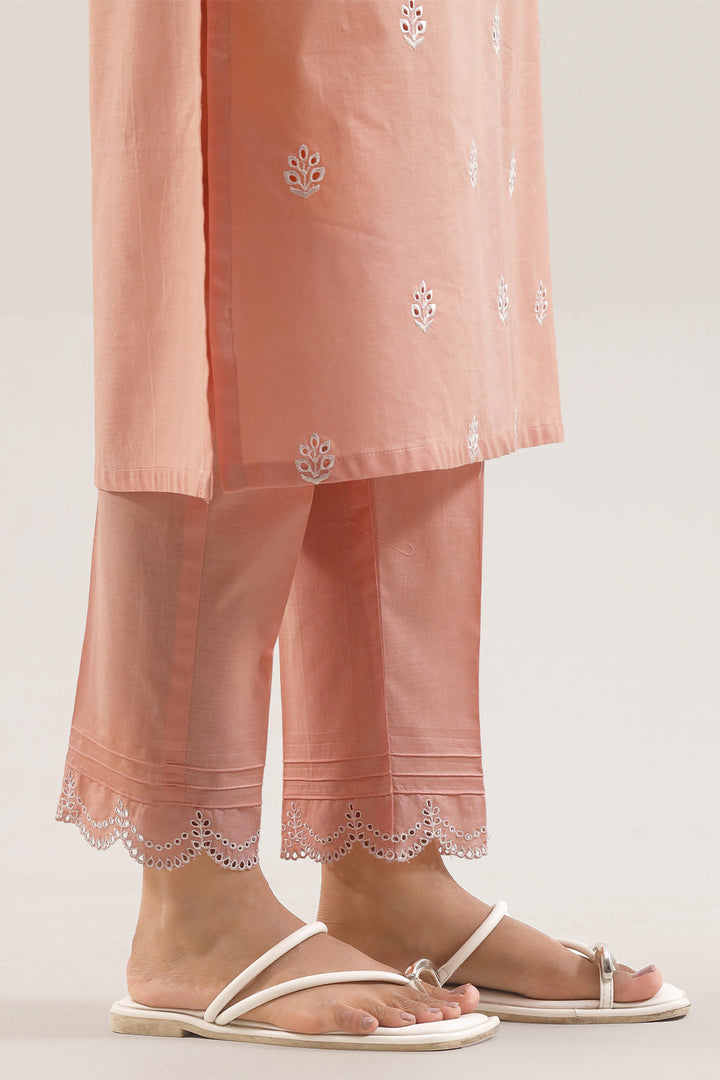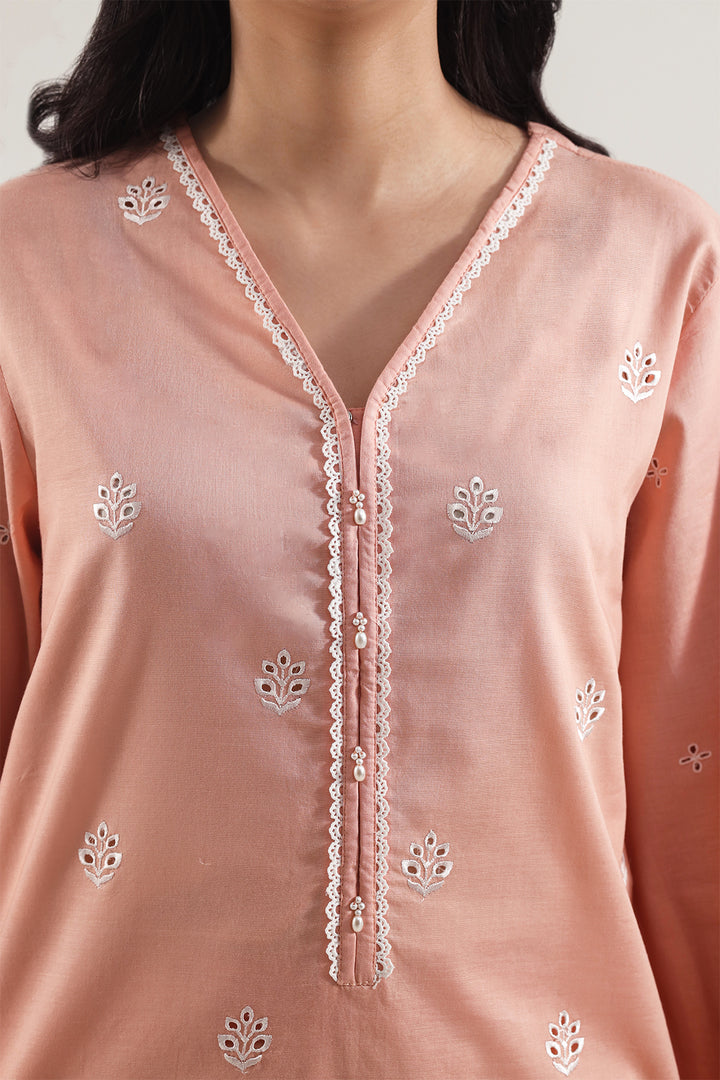 Elevate Your Day-to-Day Elegance With SAYA’s Solid Embroidered Cambric 2-Piece Set In Light Peach, Crafted From Premium Cambric Fabric Known For Its Smooth Texture And Breathable Comfort. The Shirt Showcases Elegant, Subtle Embroidery That Adds Depth Without Overpowering, While The Coordinated Trouser Offers A Clean, Ready-To-Wear Fit. The Soft Light Peach Hue Brings Warmth And Versatility—Making It Ideal For Daytime Events, Smart-Casual Gatherings, Or Refreshing Your Everyday Wardrobe. This Set Effortlessly Marries Comfort, Style, And Ease.