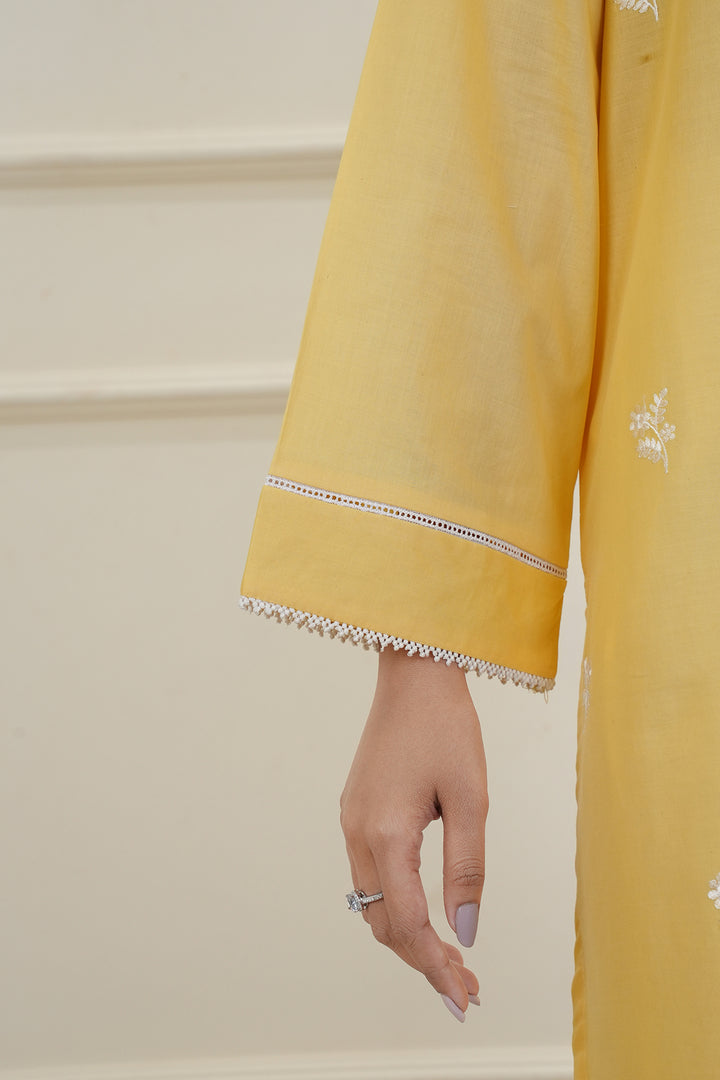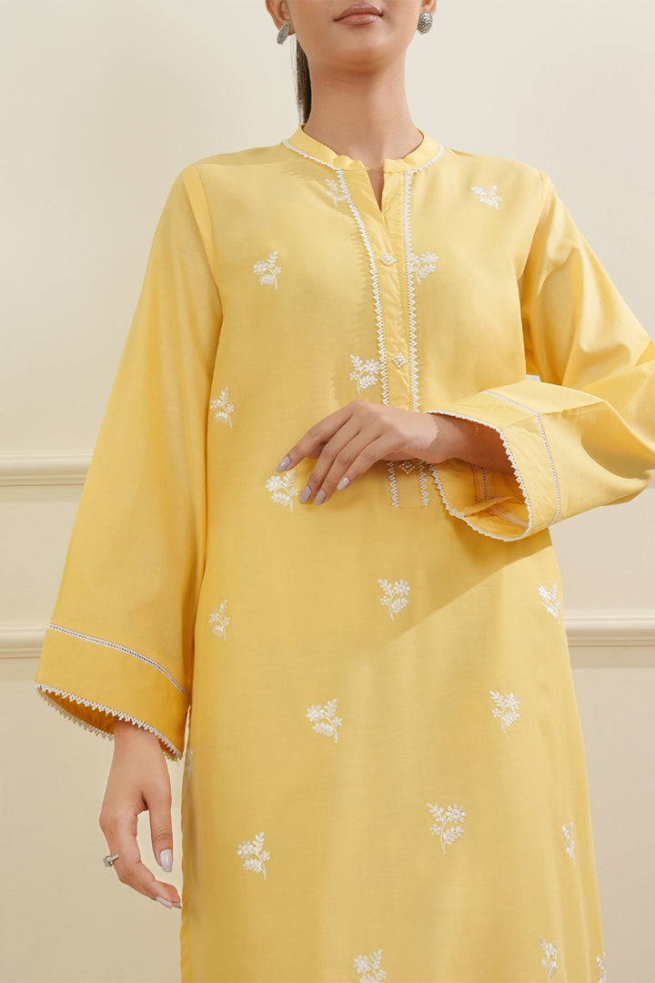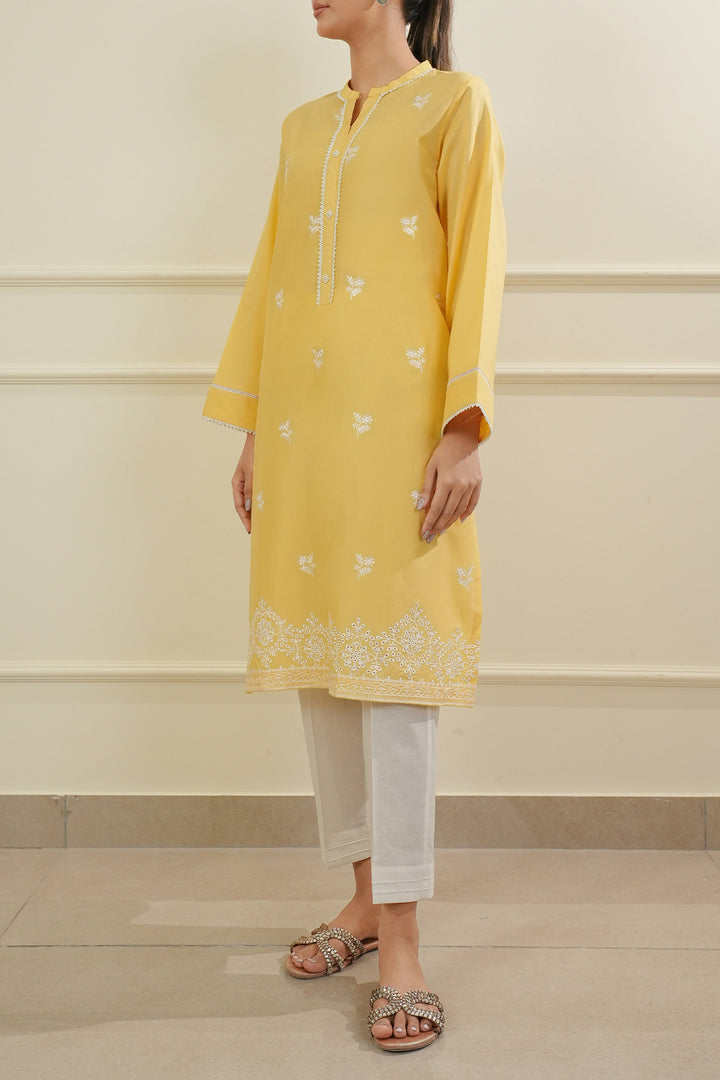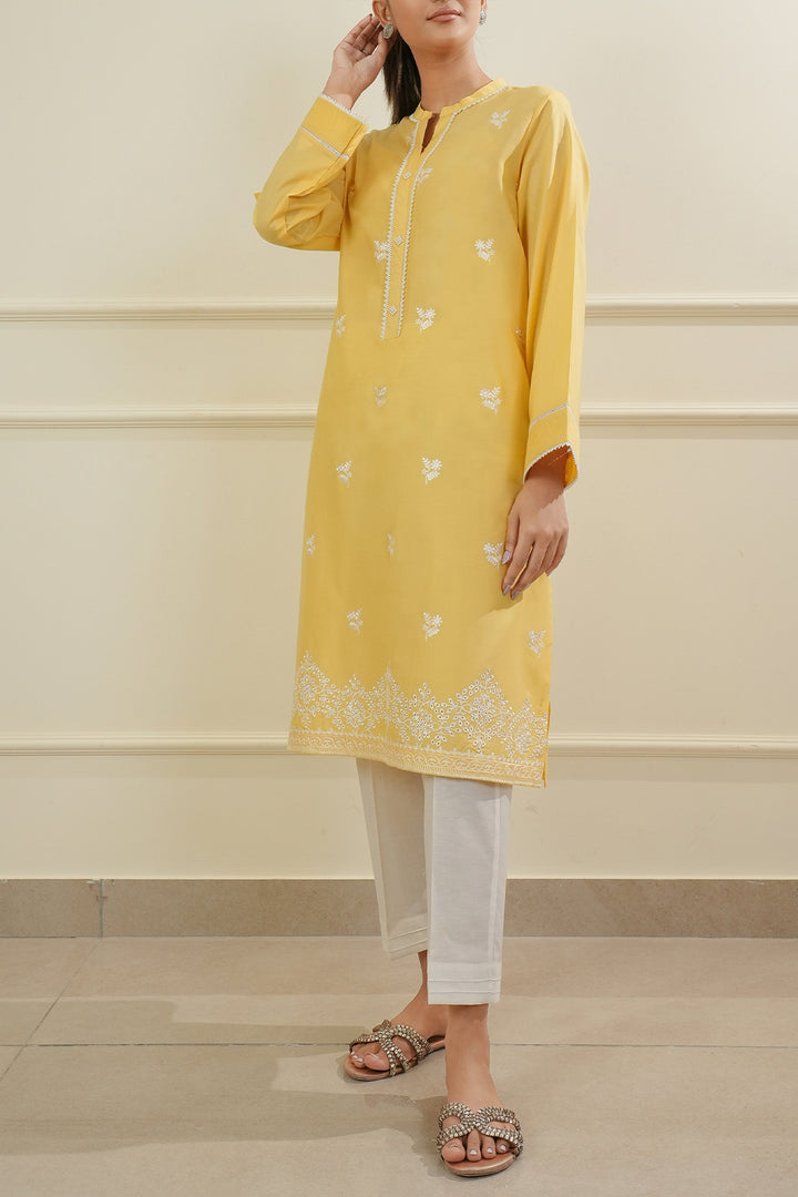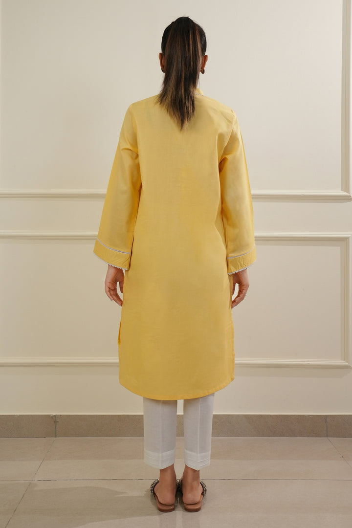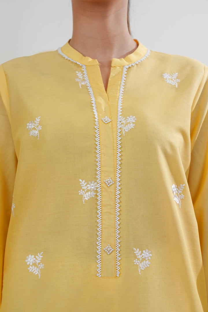 Introducing Saya's Solid Embroidered Cambric Stitched Shirt, a perfect blend of elegance and comfort. This ready-to-wear shirt in vibrant yellow is adorned with delicate embroidery, making it ideal for both casual and semi-formal occasions. Crafted from high-quality cambric fabric, it ensures breathability and ease throughout the day.