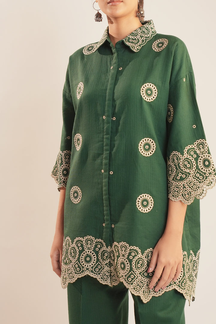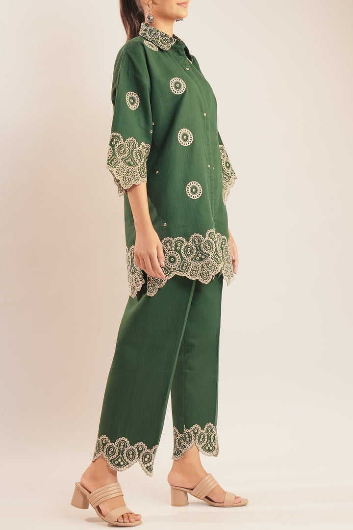 Refine your wardrobe with Saya's Solid Embroidered Cotton Stitched 2-Piece ensemble, exuding sophistication and comfort. Featuring a meticulously embroidered cotton shirt paired with a tailored trouser, this outfit is a versatile choice for everyday elegance.
