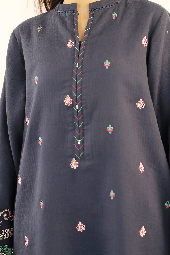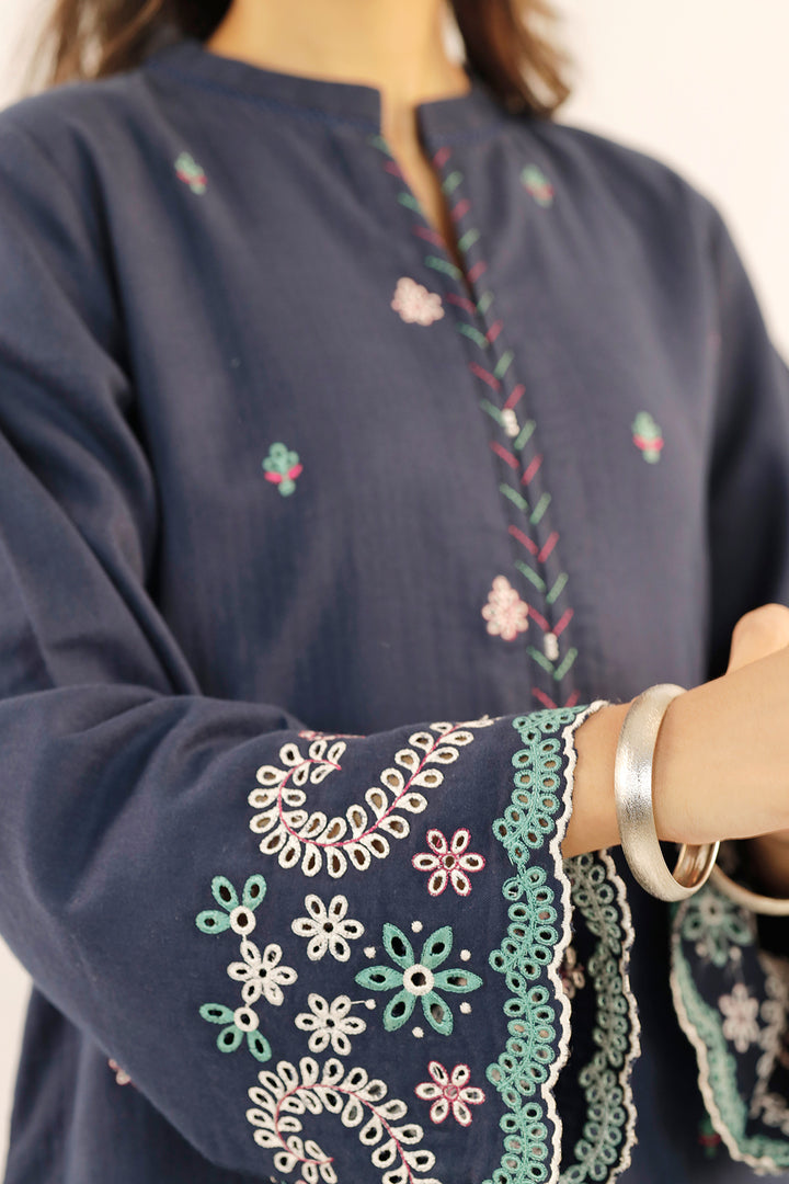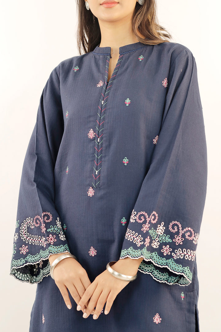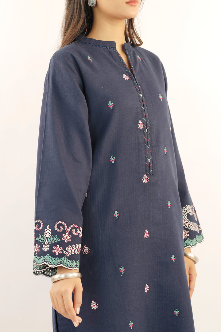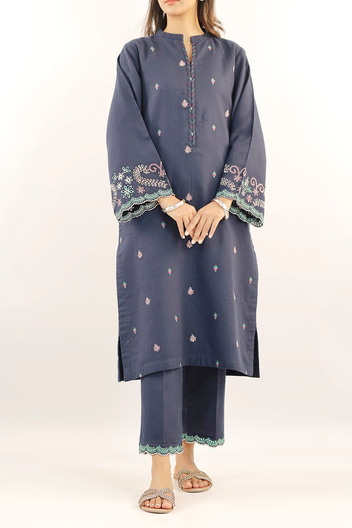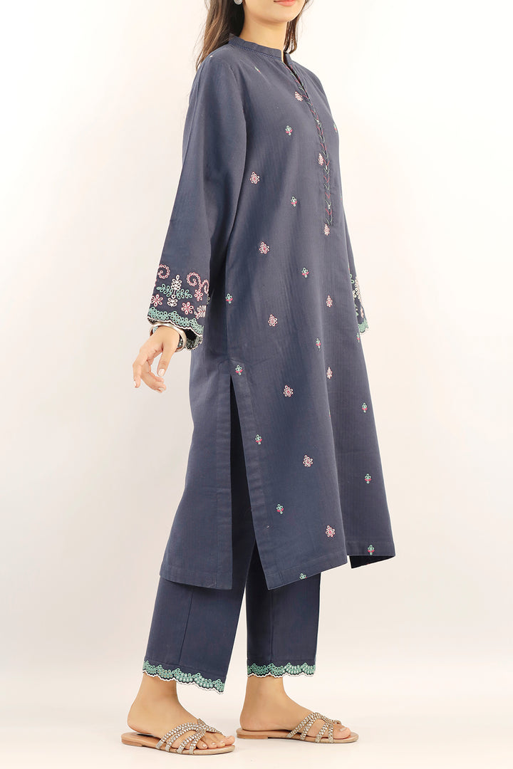 Solid Embroidered Cotton Stitched 2 Piece (Shirt/Trouser)