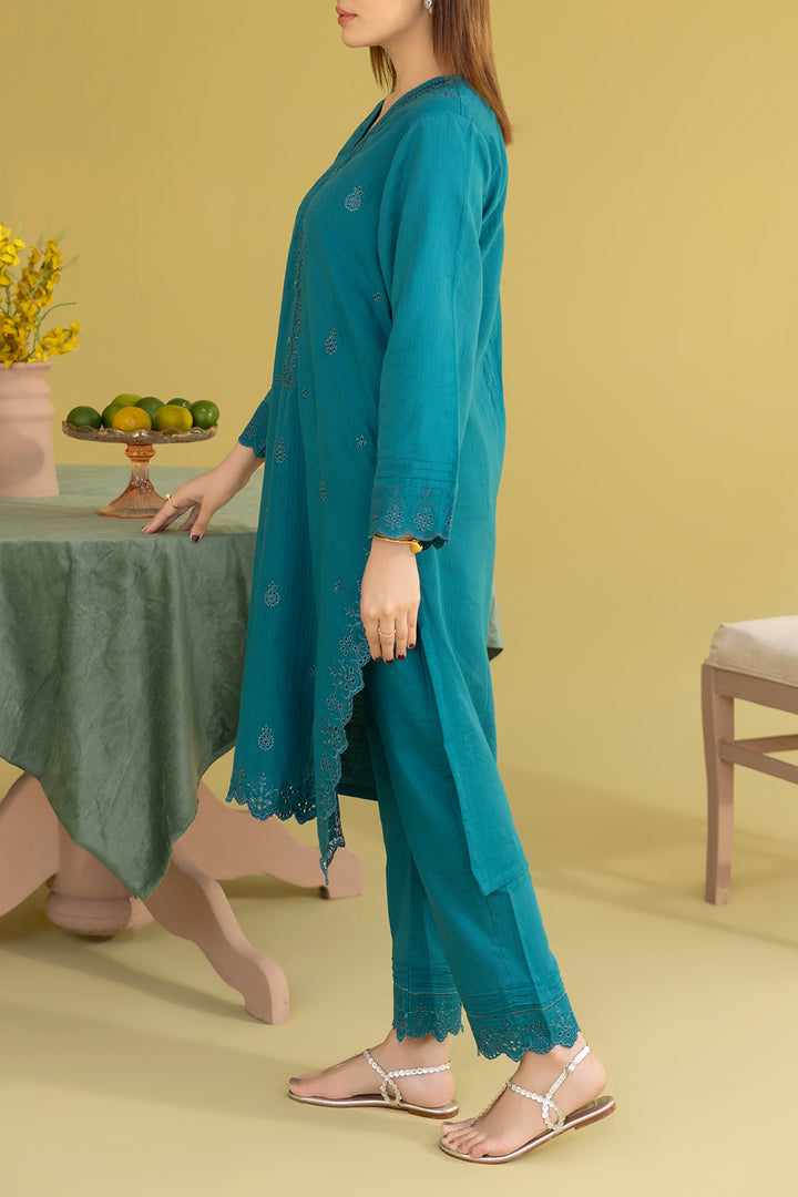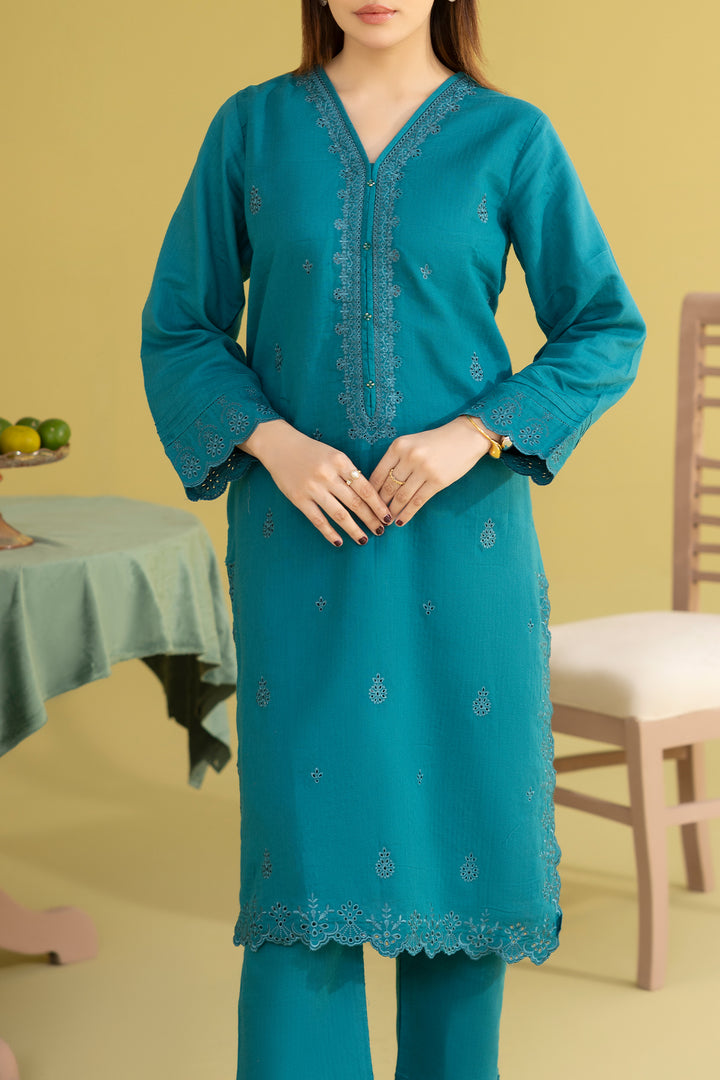 Solid Embroidered Cotton Stitched 2 Piece (Shirt/Trouser)
