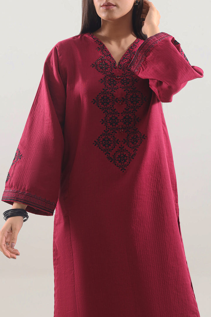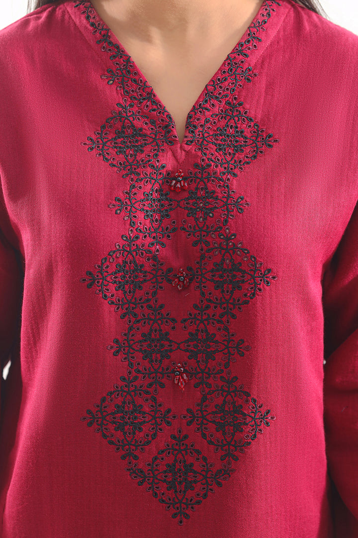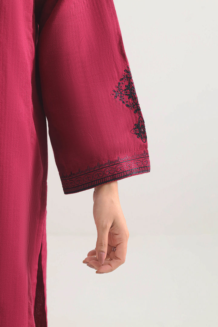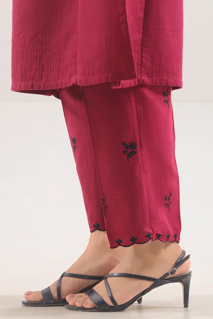 Solid Embroidered Cotton Stitched 2-Piece By SAYA Arrives In A Pristine Maroon Hue. Crafted From Soft, Breathable Cotton, The Shirt Features Delicate Tone-On-Tone Embroidery That Enhances Without Overpowering. Paired With A Matching Trouser In The Same Fabric, This Ready-To-Wear Set Offers Structure And Comfort. Ideal For Daytime Events, Office Wear, Or Elegant Casual Outings Where Subtle Detailing Meets Practical Style.