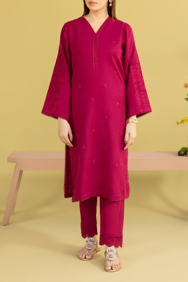 Solid Embroidered Cotton Stitched 2 Piece (Shirt/Trouser)