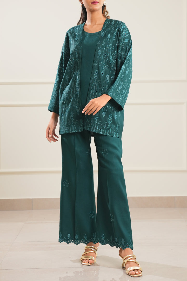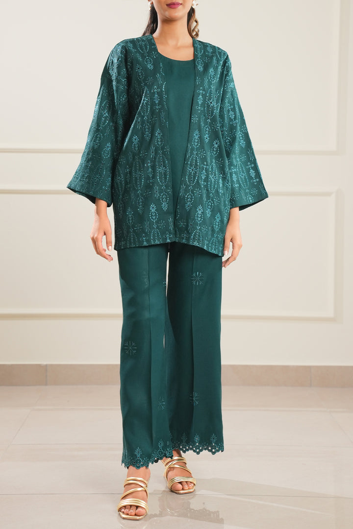 Experience understated elegance with this solid embroidered dobby crepe stitched 2-piece ensemble. The delicately embroidered shirt, paired with a matching trouser, offers a refined look suitable for formal and semi-formal occasions. The dobby crepe fabric ensures a soft, flowy drape, providing comfort with a touch of sophistication.