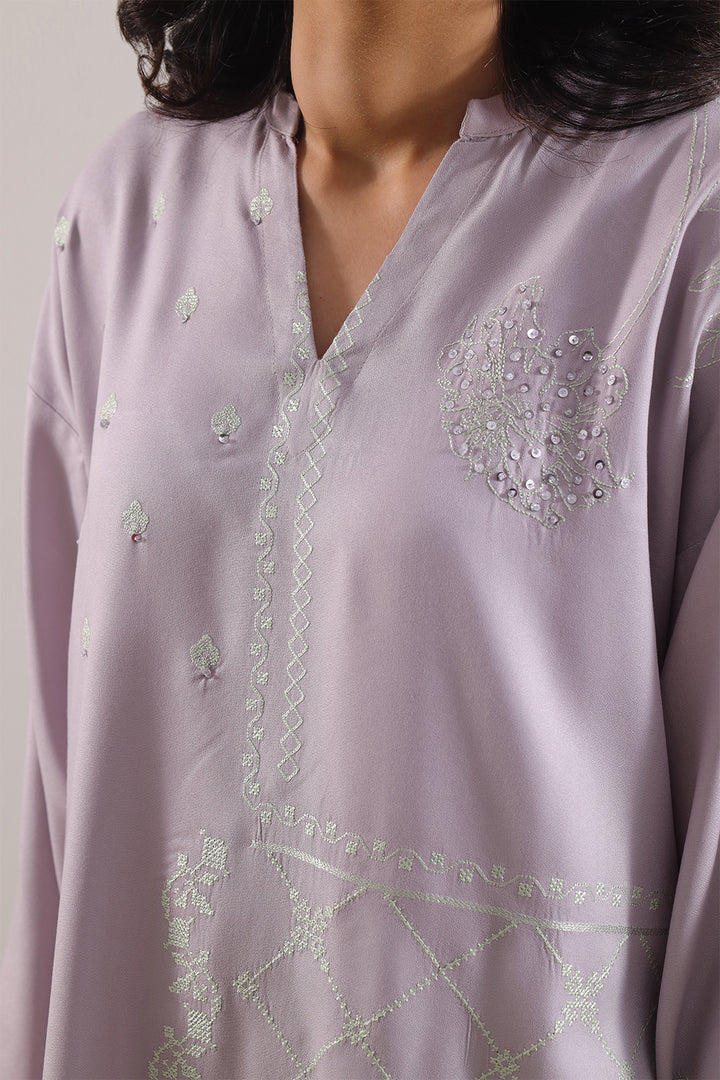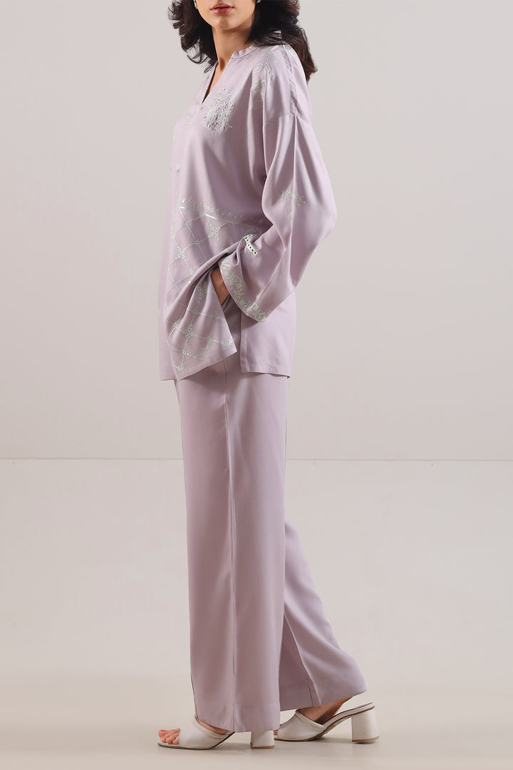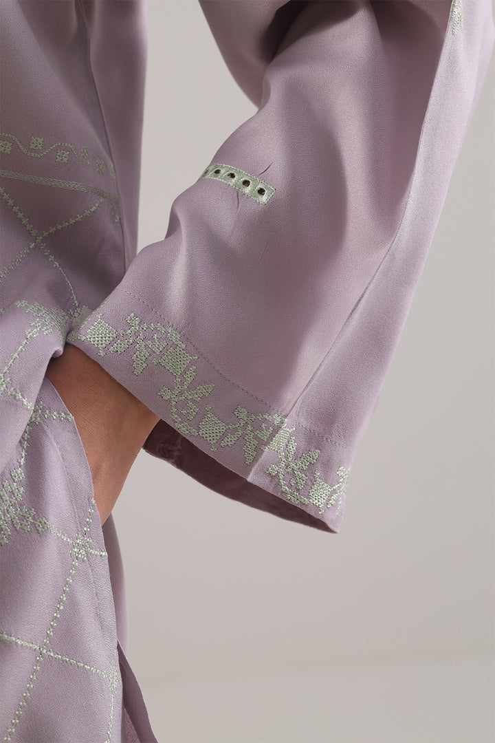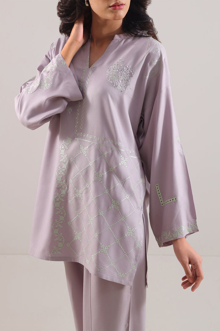 Elevate Everyday Elegance With This Solid Embroidered Dobby Crepe 2-Piece Set By SAYA, Featuring Lightweight Textured Dobby Crepe Fabric With Intricate Embroidery That Enhances Its Solid Foundation. The Ready-To-Wear Shirt Offers Polished Silhouette And Refined Detail, While The Coordinated Trouser Ensures Comfortable Fit And Graceful Flow. Perfect For Office Days, Day Gatherings, Or Subtle Refined Looks Where Comfort Meets Understated Style.
