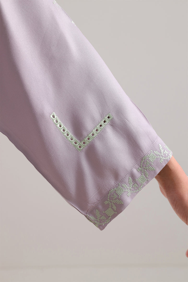 Ready To Wear Dobby Crepe Solid Embroidered Stitched Shirt.
