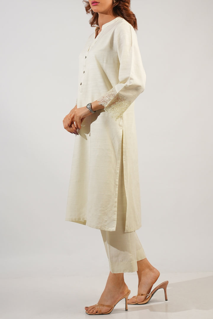Ivory Solid Embroidered Khaddar Stitched Shirt From SAYA Features Refined Embroidery On Premium Khaddar Fabric. The Thick Weave Provides Warmth, Durability, And Breathability, Making It Perfect For Colder Days. Tailored With A Clean Cut And Classic Finish, This Shirt Combines Comfort With Sophistication. Ideal For Winter Gatherings, Formal Outings, Or Layered Seasonal Looks.