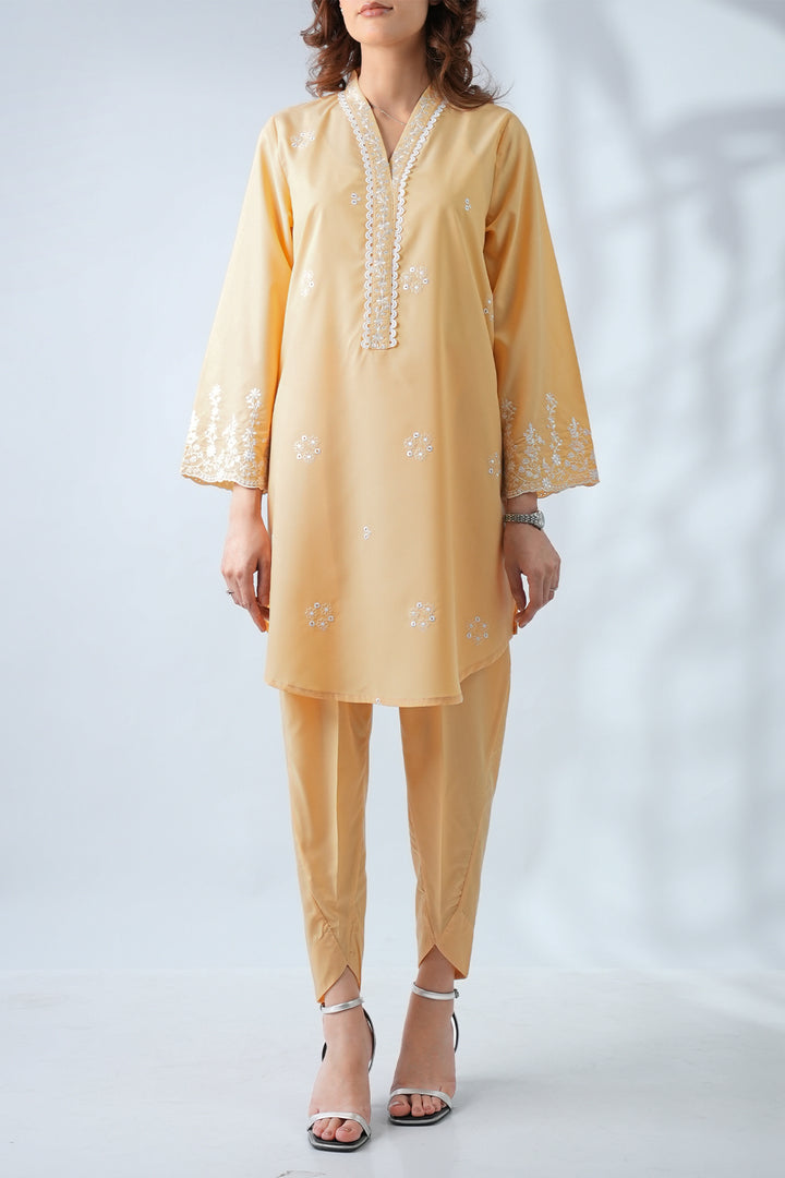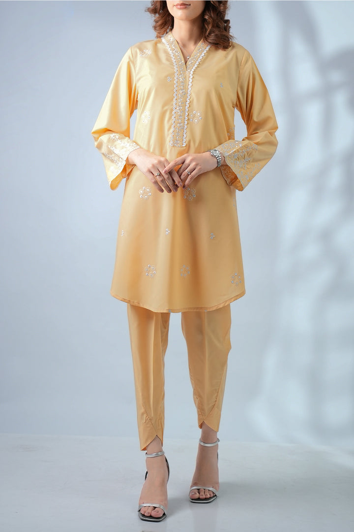 Refine your everyday look with this solid embroidered polyester stitched 2-piece by Saya. Crafted from lightweight polyester, this elegant set features a delicately embroidered shirt paired with a coordinating trouser, perfect for daily wear with a polished touch.