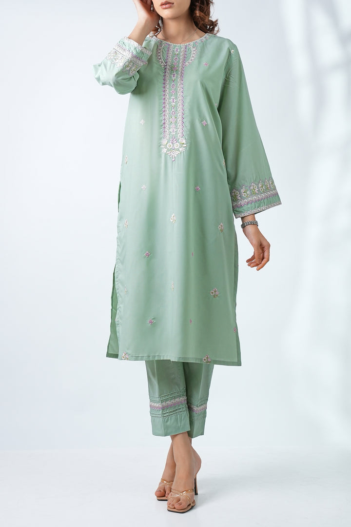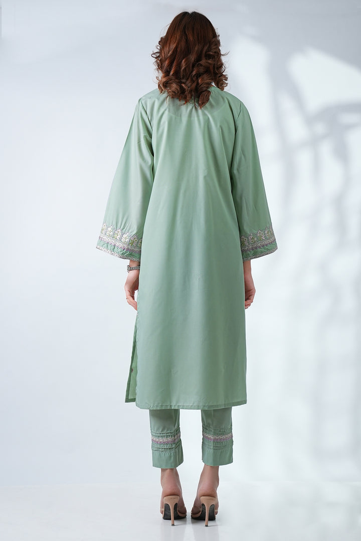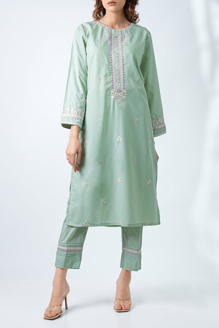 Saya's Solid Embroidered Polyester Stitched 2-Piece Suit in Sea Green offers a harmonious blend of elegance and comfort, making it an ideal choice for both casual and semi-formal occasions. Crafted from premium polyester fabric, this ensemble ensures a polished look throughout the day.