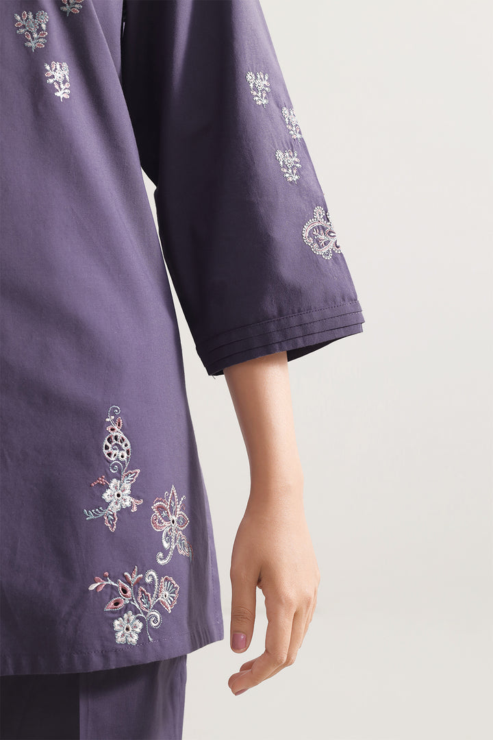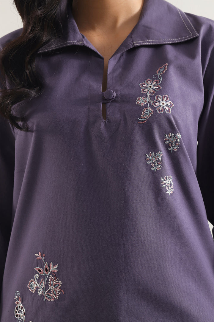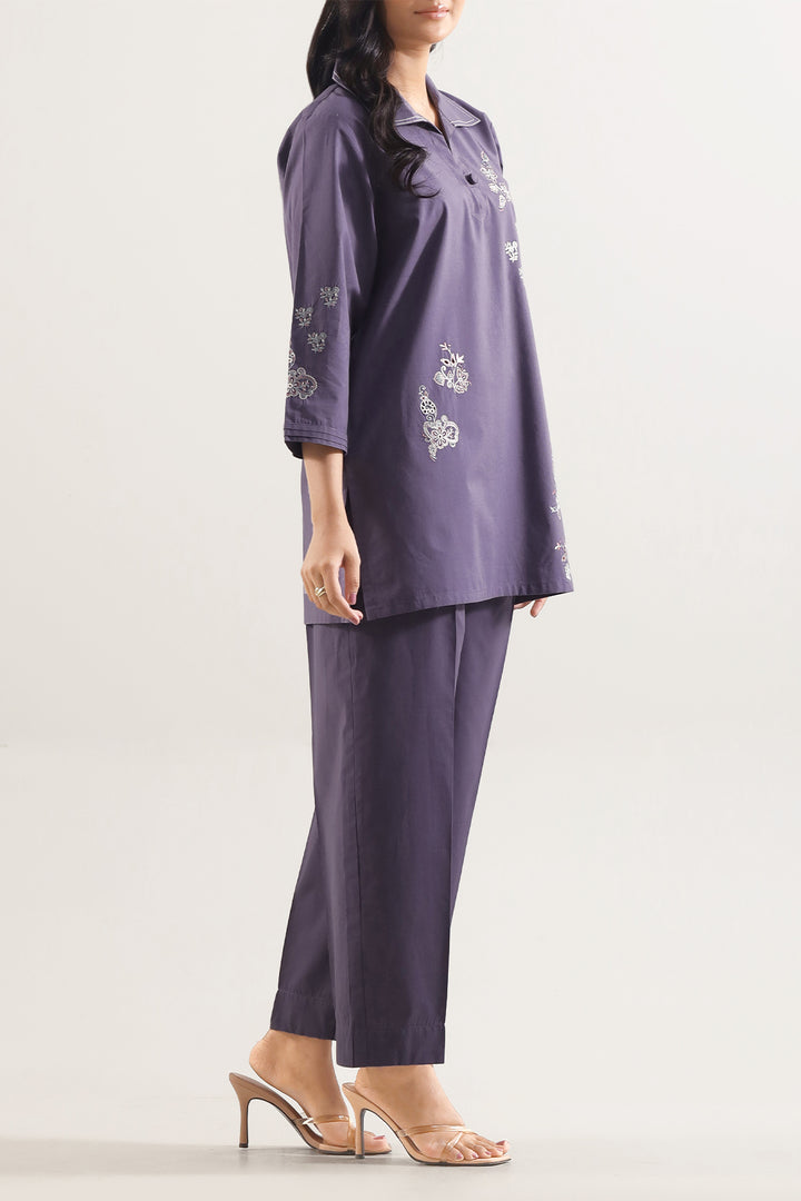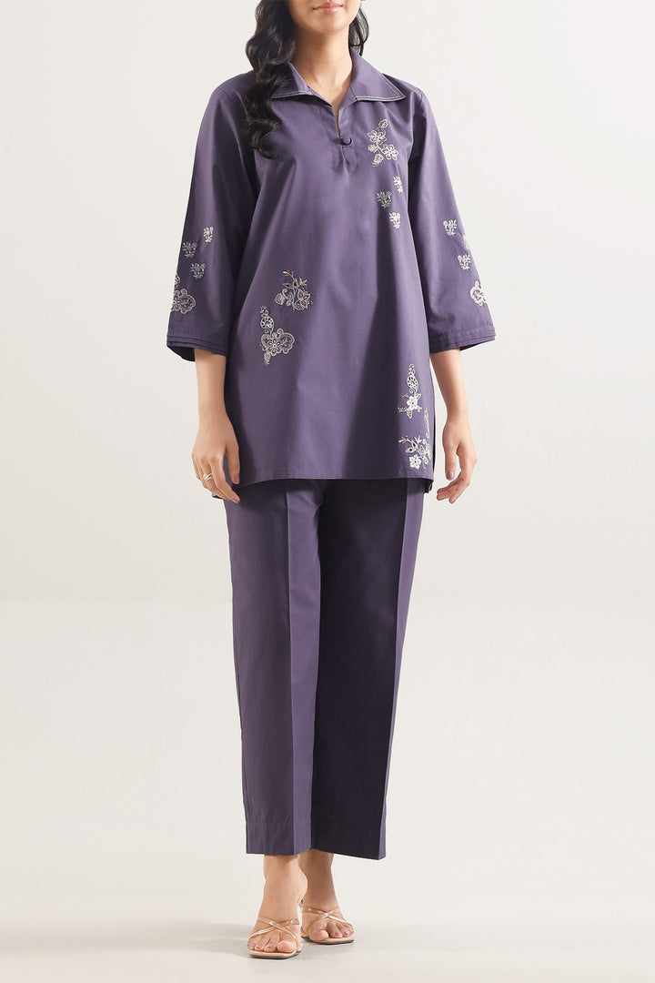 Crafted From Poplin Fabric That Balances Crisp Structure With Breathable Comfort, This Ready To Wear Two Piece Set From SAYA Features A Shirt With Subtle, Refined Embroidery That Enhances A Clean Solid Tone Without Overstatement. The Matching Trouser Completes The Ensemble With A Harmonized Silhouette, Ideal For Semi-Formal Events, Workwear Or Smart Social Occasions.