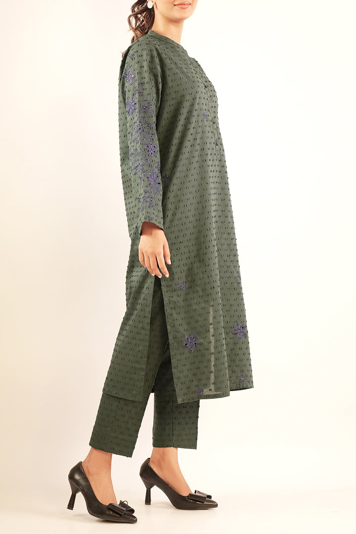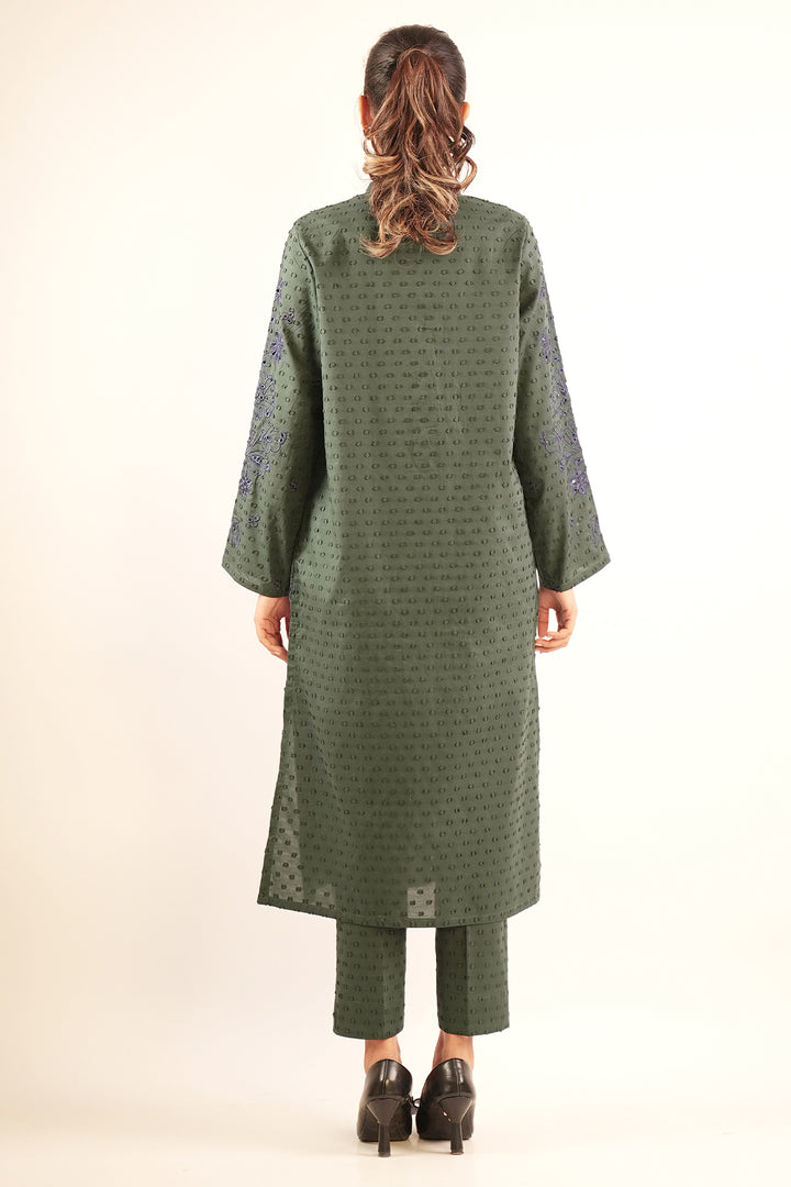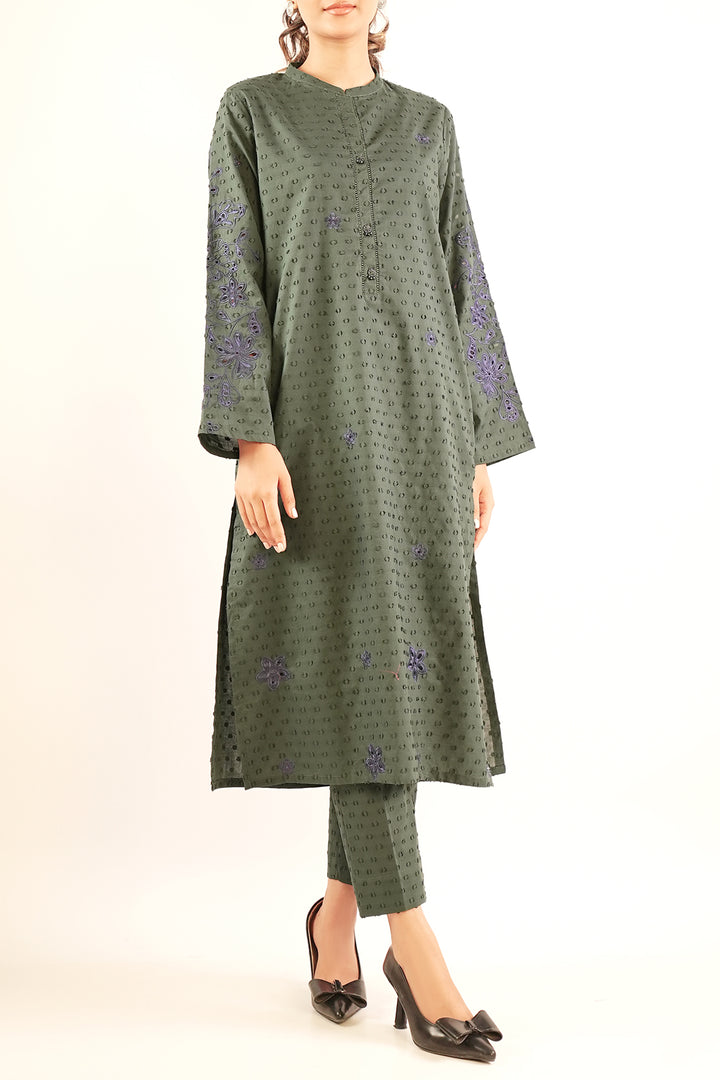 Solid Embroidered Reverse Jacquard Stitched 2 Piece (Shirt/Trouser)