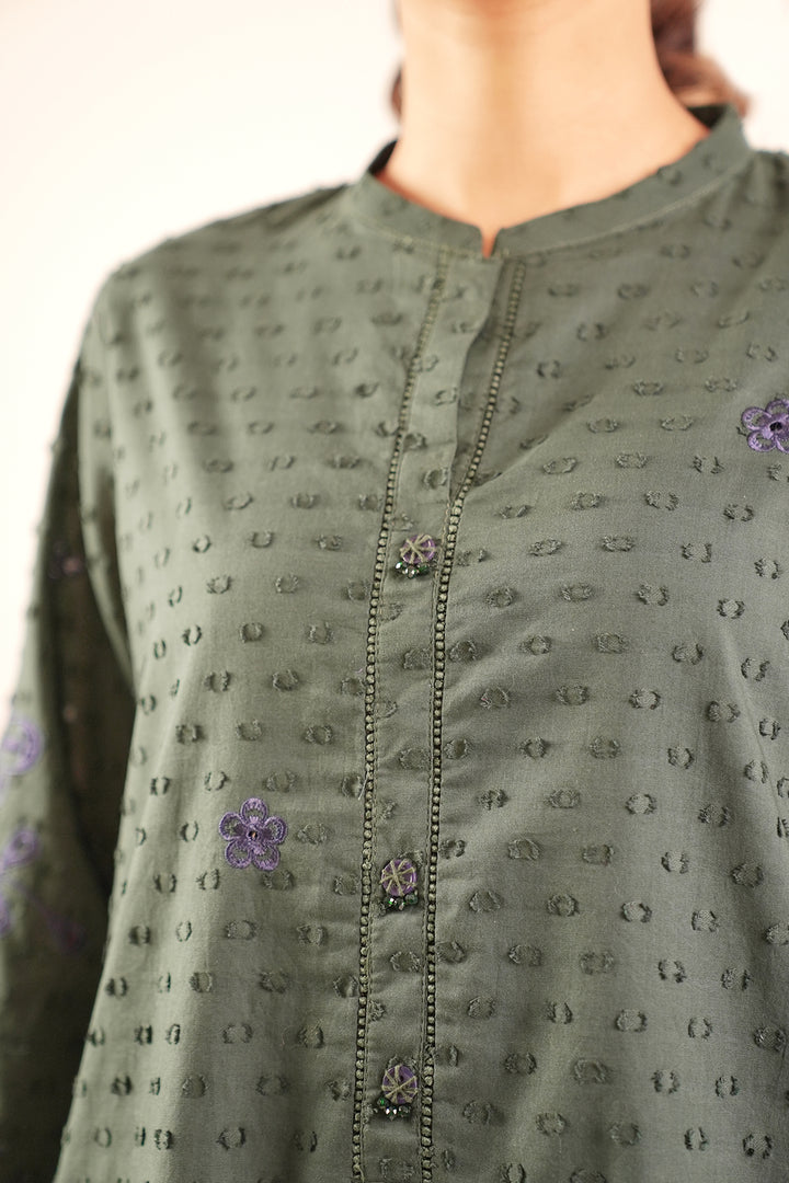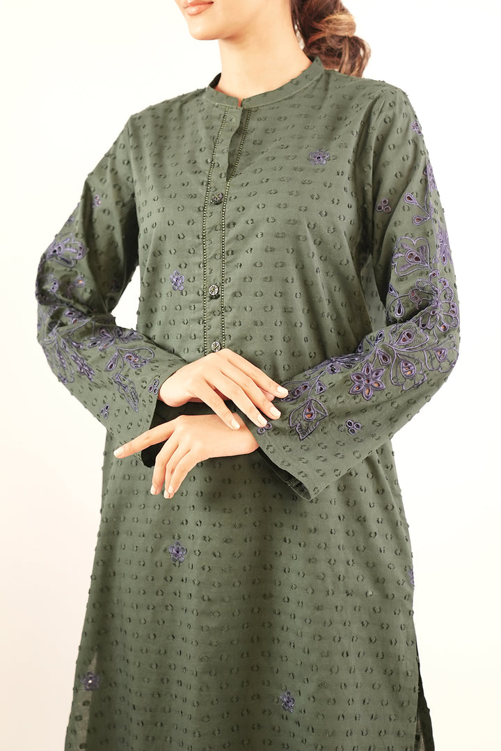 Ready To Wear Embroidered Reverse Jacquard Stitched Shirt.