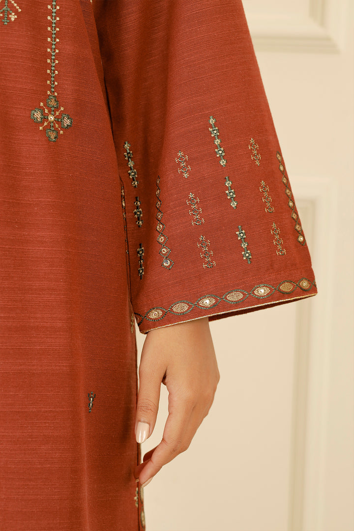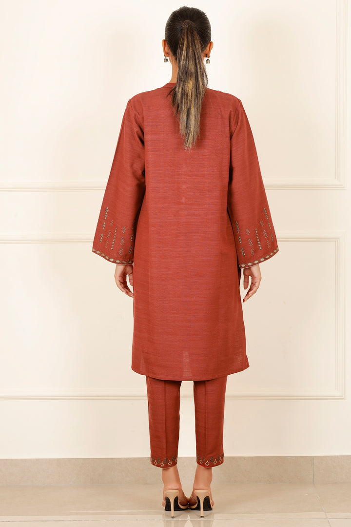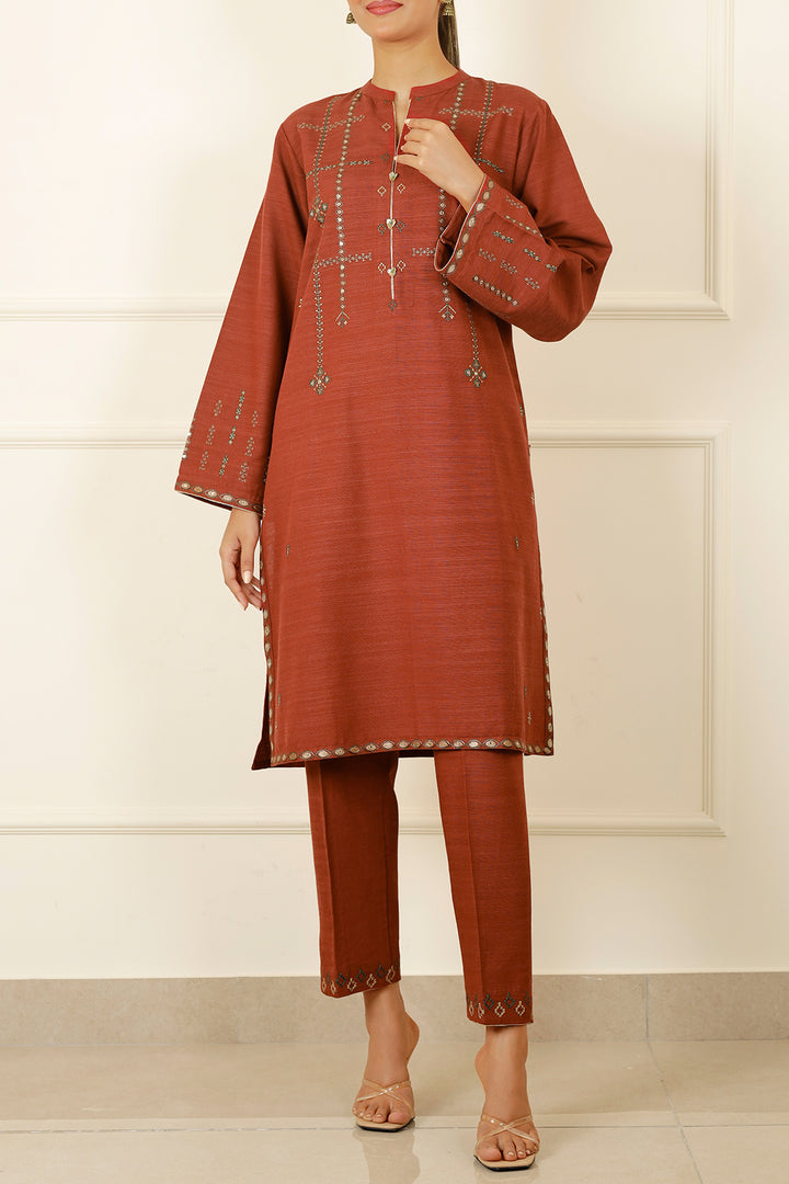 Solid Embroidered Soft Raw Silk Stitched 2 Piece (Shirt/Trouser)