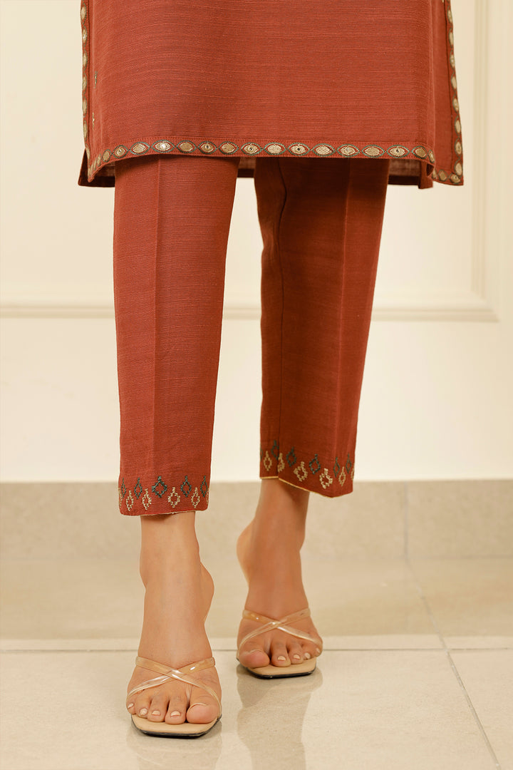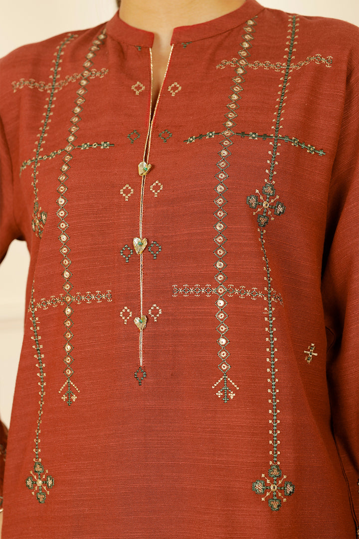 This solid embroidered slub viscose stitched 2-piece set is a refined choice for effortless elegance. The soft slub viscose fabric ensures comfort, while the delicate embroidery adds a sophisticated touch. Perfect for both casual and semi-formal occasions, this outfit is a must-have for your wardrobe.