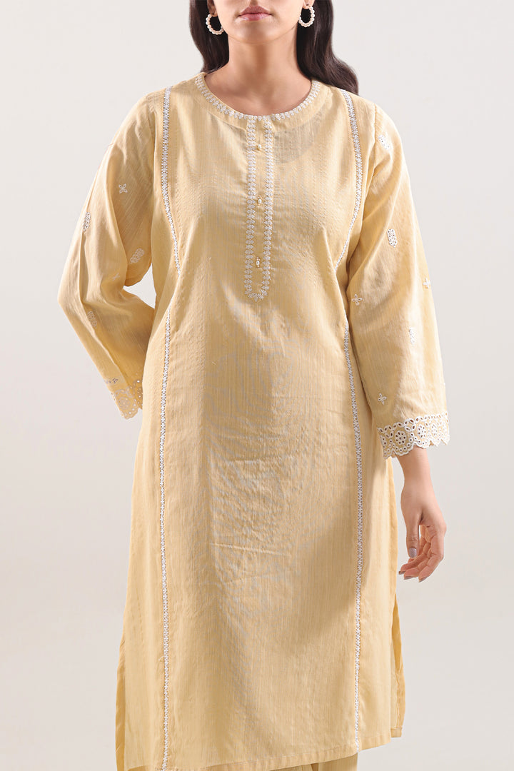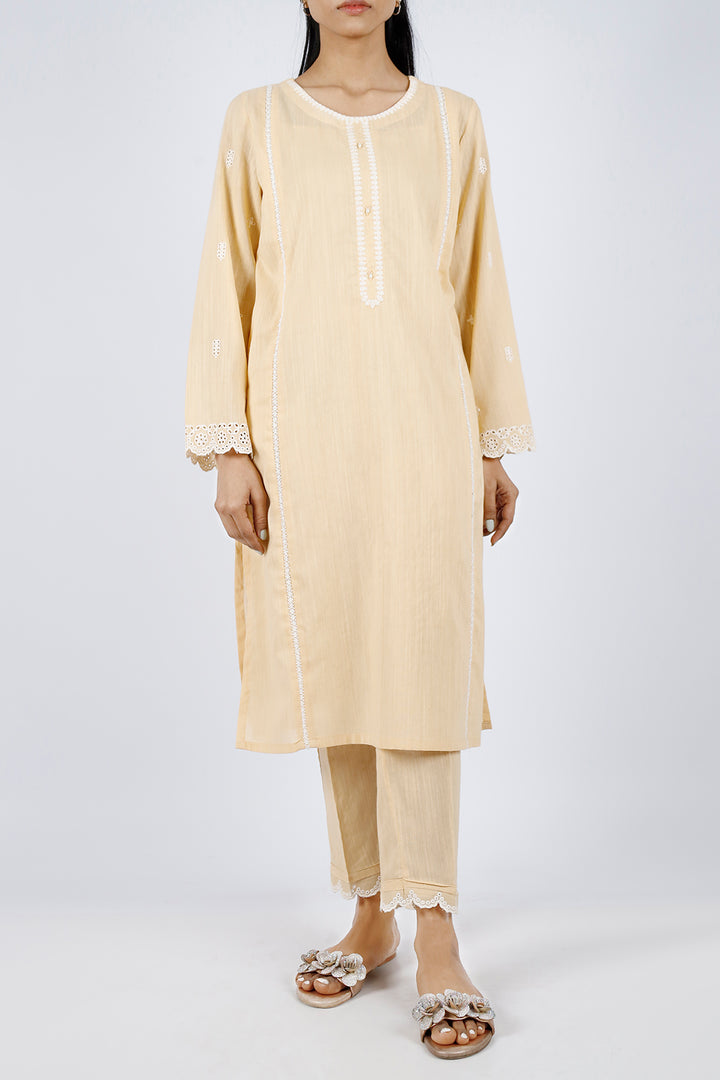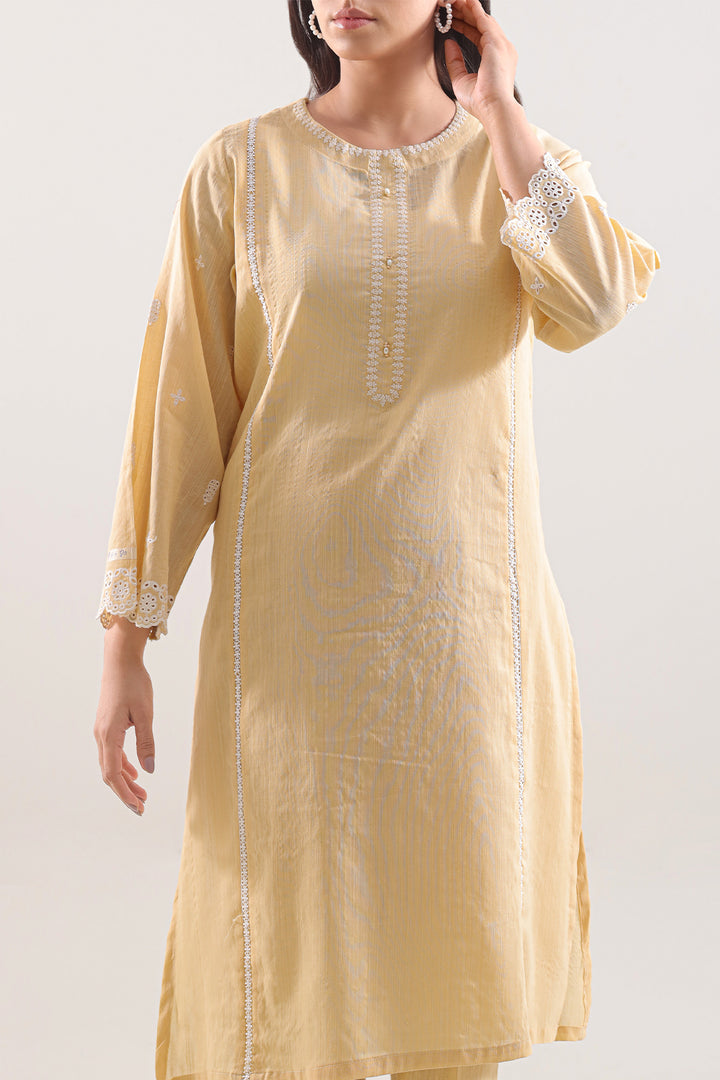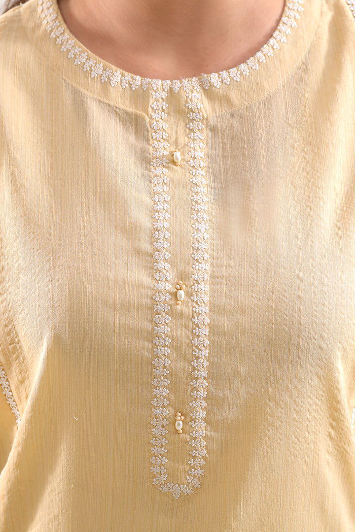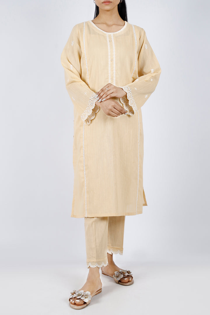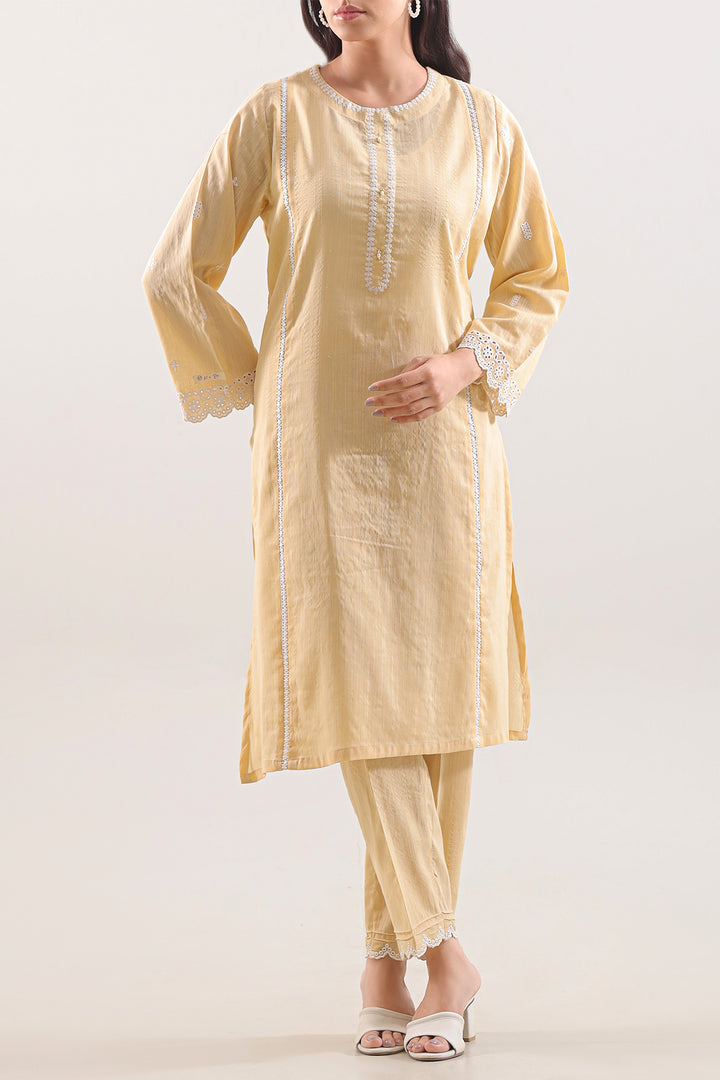 Elevate your wardrobe with this solid embroidered zari filament stitched 2-piece set. Featuring a delicately embroidered shirt paired with a coordinating trouser, this ensemble exudes elegance and sophistication. The premium zari filament fabric adds a refined touch, perfect for festive and formal occasions.