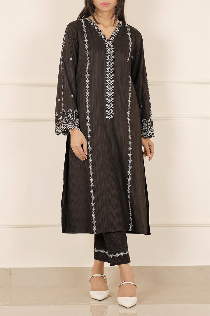 Solid Embroidered Zari Stript Stitched 2 Piece (Shirt/Trouser)