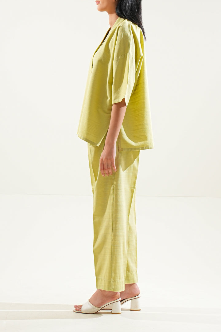 Elevate Your Wardrobe With SAYA’s Slub Viscose Solid Stitched Shirt. Crafted From Viscose Slub Fabric In Pistachio Green, It Features A Delicate Textured Finish That Instantly Adds Character. Lightweight And Breathable With A Graceful Drape, It Effortlessly Combines Comfort, Quality, And Subtle Sophistication—Perfect For Smart Casual Wear, Everyday Elegance, Or Refined Daytime Styling.