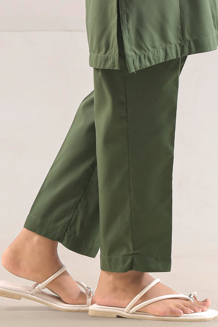 Solid Wash-N-Wear Stitched Two-Piece Shirt & Trouser By SAYA, Tailored From High-Quality Wash-N-Wear Fabric That Offers Wrinkle Resistance And Easy Maintenance. The Shirt Boasts A Crisp Moss Green Hue With Clean Finish And Polished Look, While The Trouser Matches Smoothly To Complete The Ensemble. Perfect For Daily Office Wear, Travel, Or Smart Casual Outings With Minimal Fuss. Durable Stitching And Natural Blend Ensure Comfort, Longevity And A Presentable Appearance All Day Long.