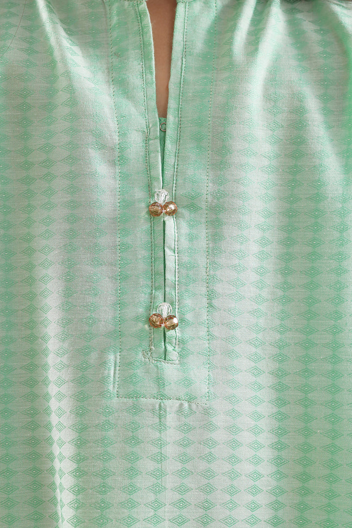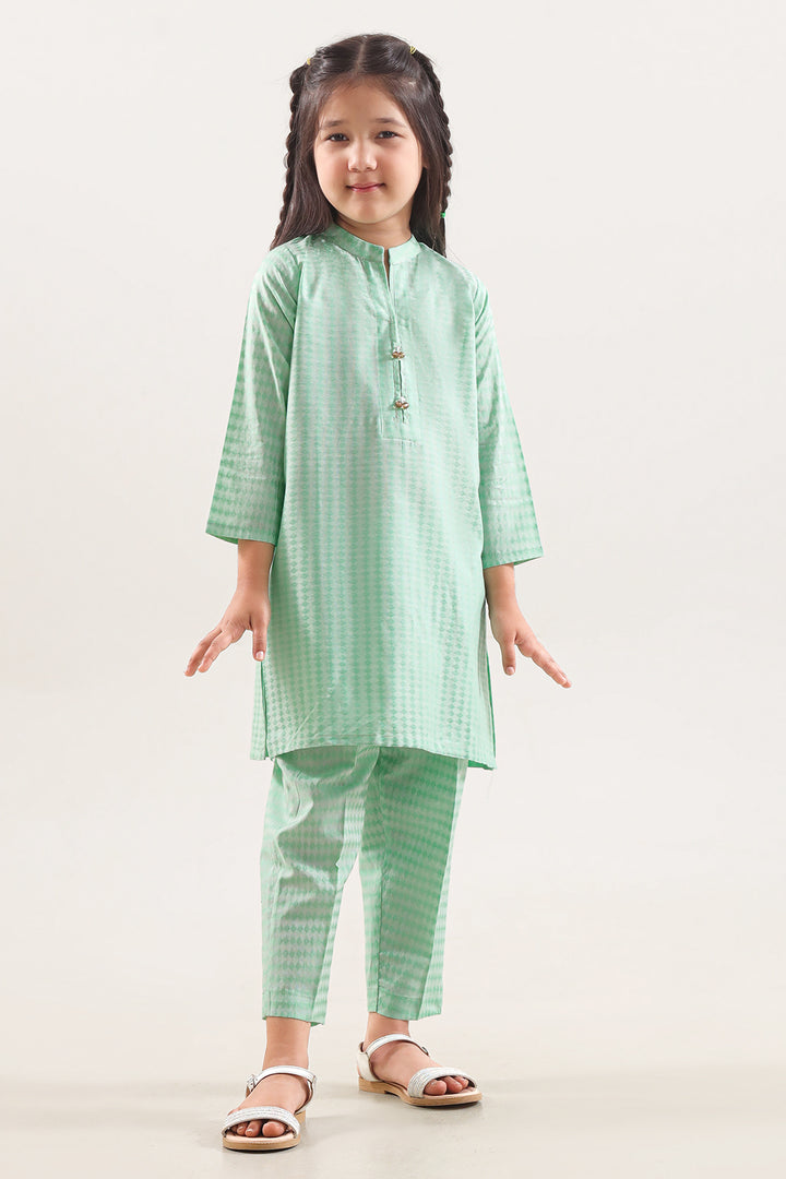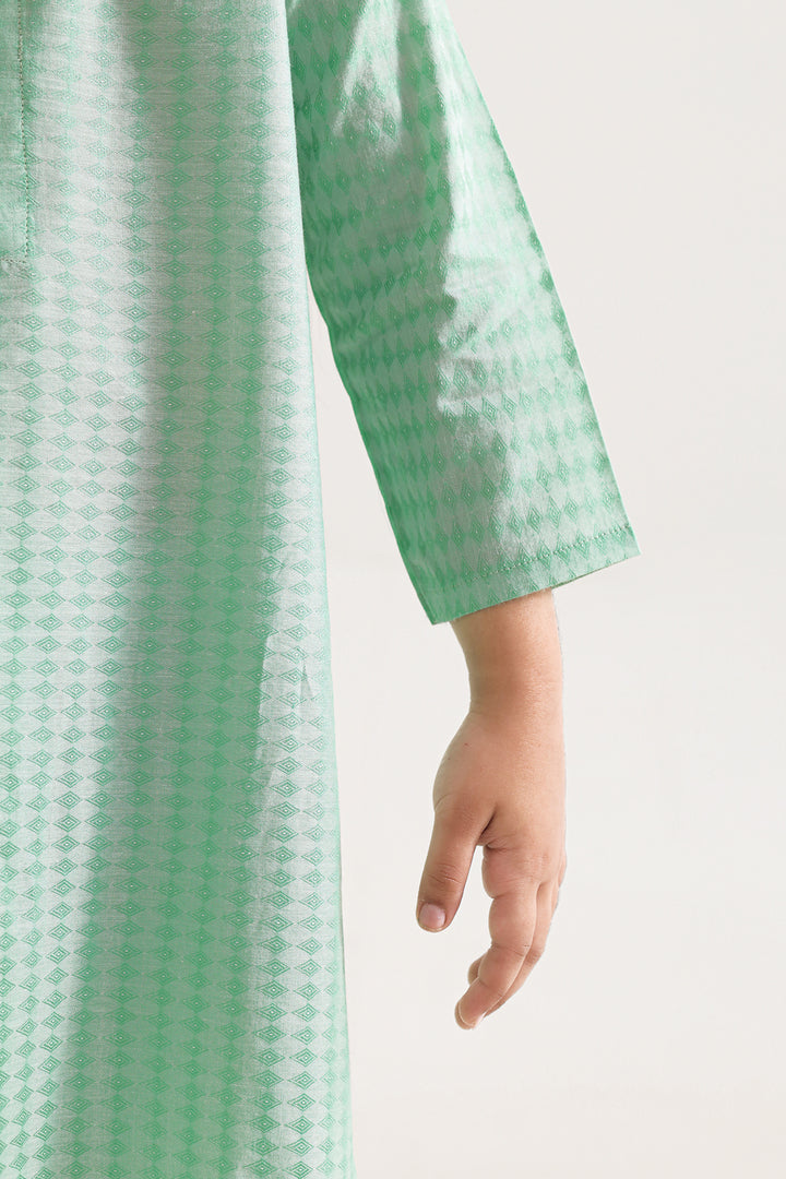 Elevate Your Child’s Style With This Exquisitely Crafted Two-Piece Set From SAYA, Woven In Cotton Jacquard Fabric That Offers Refined Appeal. The Shirt Showcases A Clean, Tailored Cut And Comfortable Design, While The Matching Trouser Maintains The Same High-Quality Fabric And Seamless Stitching For A Cohesive Look. Ideal For Festive Gatherings Or Smart Casual Occasions, This Ensemble Combines Quality, Material Excellence, And Fashion-Forward Utility To Deliver A Polished, Stylish Outfit.