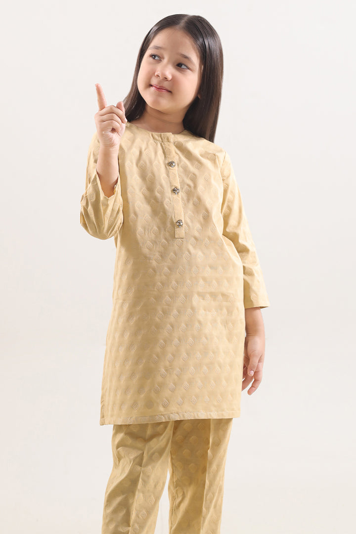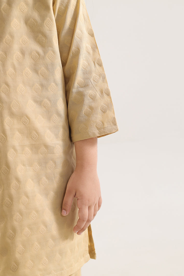 Dress Your Young One With Sophisticated Ease Through This Elegant Two-Piece Ensemble From SAYA, Tailored In Soft, Breathable Cotton Jacquard Fabric That Delivers A Refined Texture And Durable Comfort. The Shirt Features Precise Stitching And A Clean, Tailored Silhouette For A Smart Yet Relaxed Look, While The Matching Trouser Complements It With Seamless Fabric Continuity And Thoughtful Fit. Perfect For Family Gatherings, Festive Occasions Or Smart Casual Days, This Set Balances Quality, Style, And Practical Utility Effortlessly.