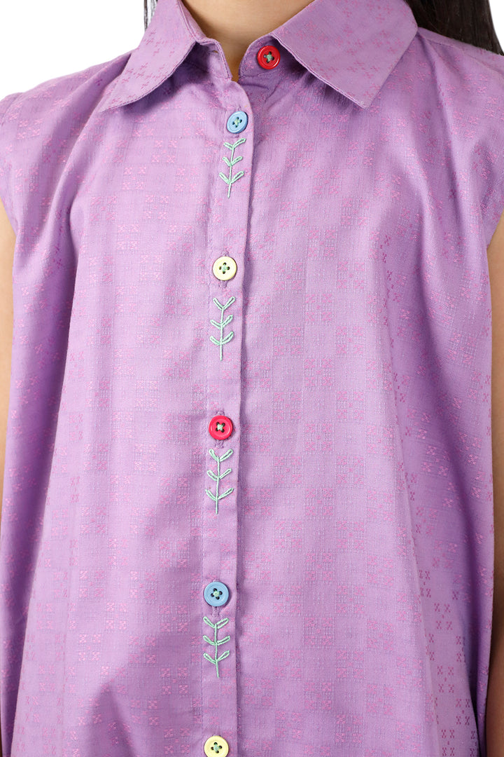 Stitched Cotton Jacquard Shirt/trouser For Kids